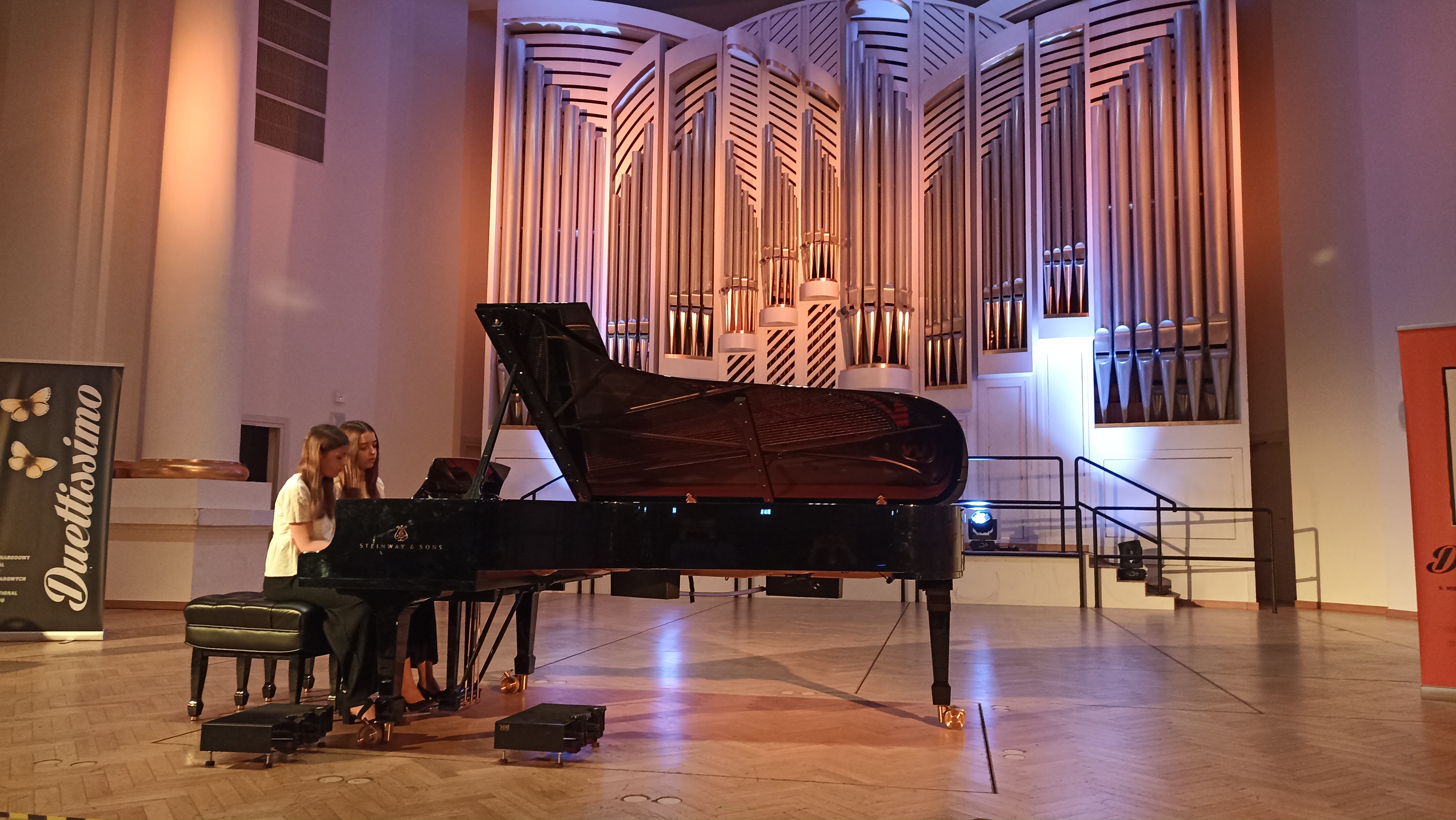 13.04.2025 trzy duety uczniów Państwowej Szkoły Muzycznej I i II stopnia im. Witolda Rowickiego w Żywcu miały zaszczyt wystąpić w prestiżowej sali Filharmonii Krakowskiej podczas koncertu dziecięcego organizowanego w ramach Międzynarodowego Festiwalu Duetów Fortepianowych Duettissimo.