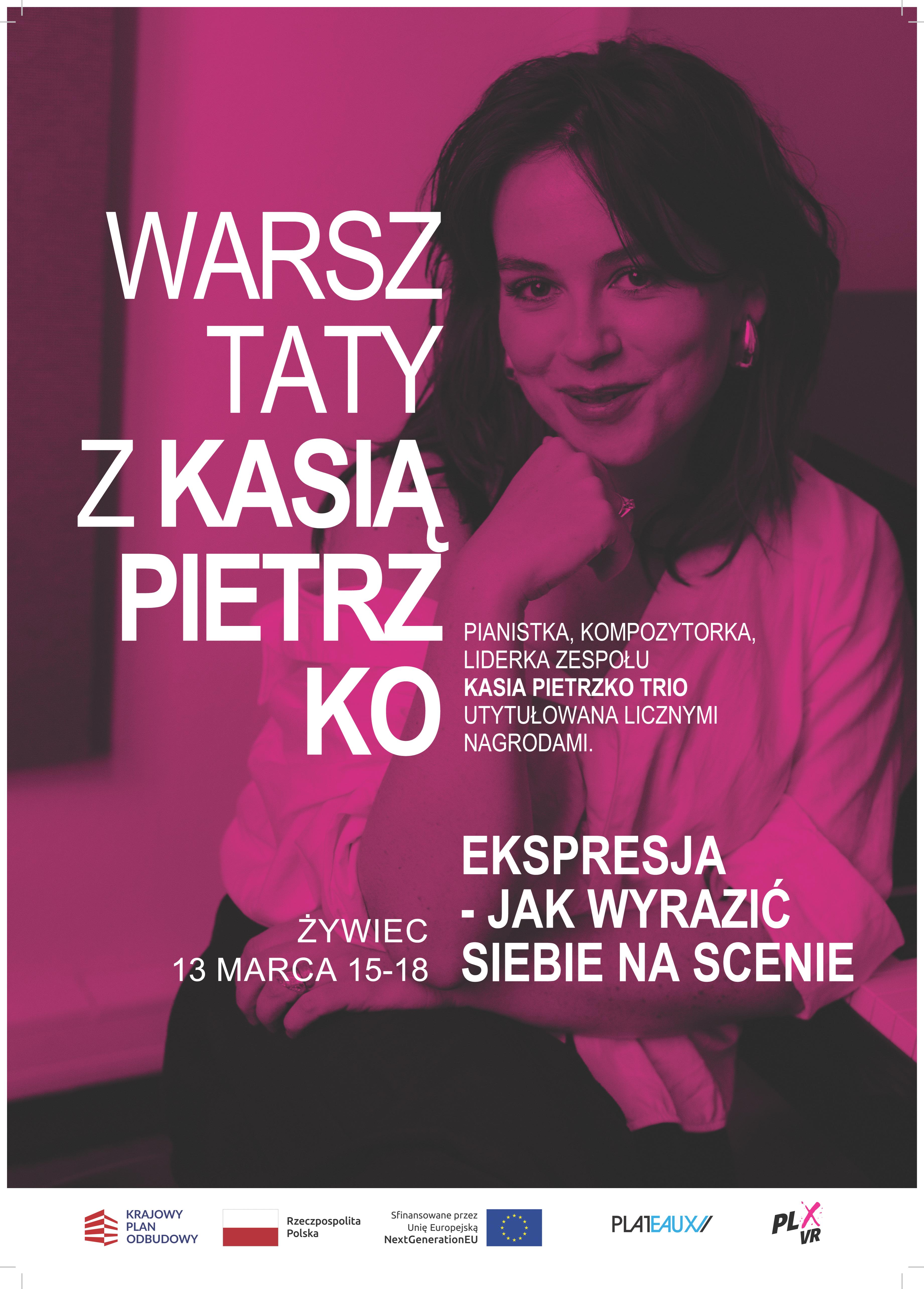 13 marca zapraszamy uczniów i nauczycieli na Warsztaty z Kasią Pietrzko - znakomitą pianistką i kompozytorką jazzową młodego pokolenia 🎹 Temat warsztatów "Ekspresja - jak wyrazić siebie na scenie". Warsztaty odbędą się na Sali Koncertowej w godzinach 15.00-18.00 Zapraszamy 🙂
