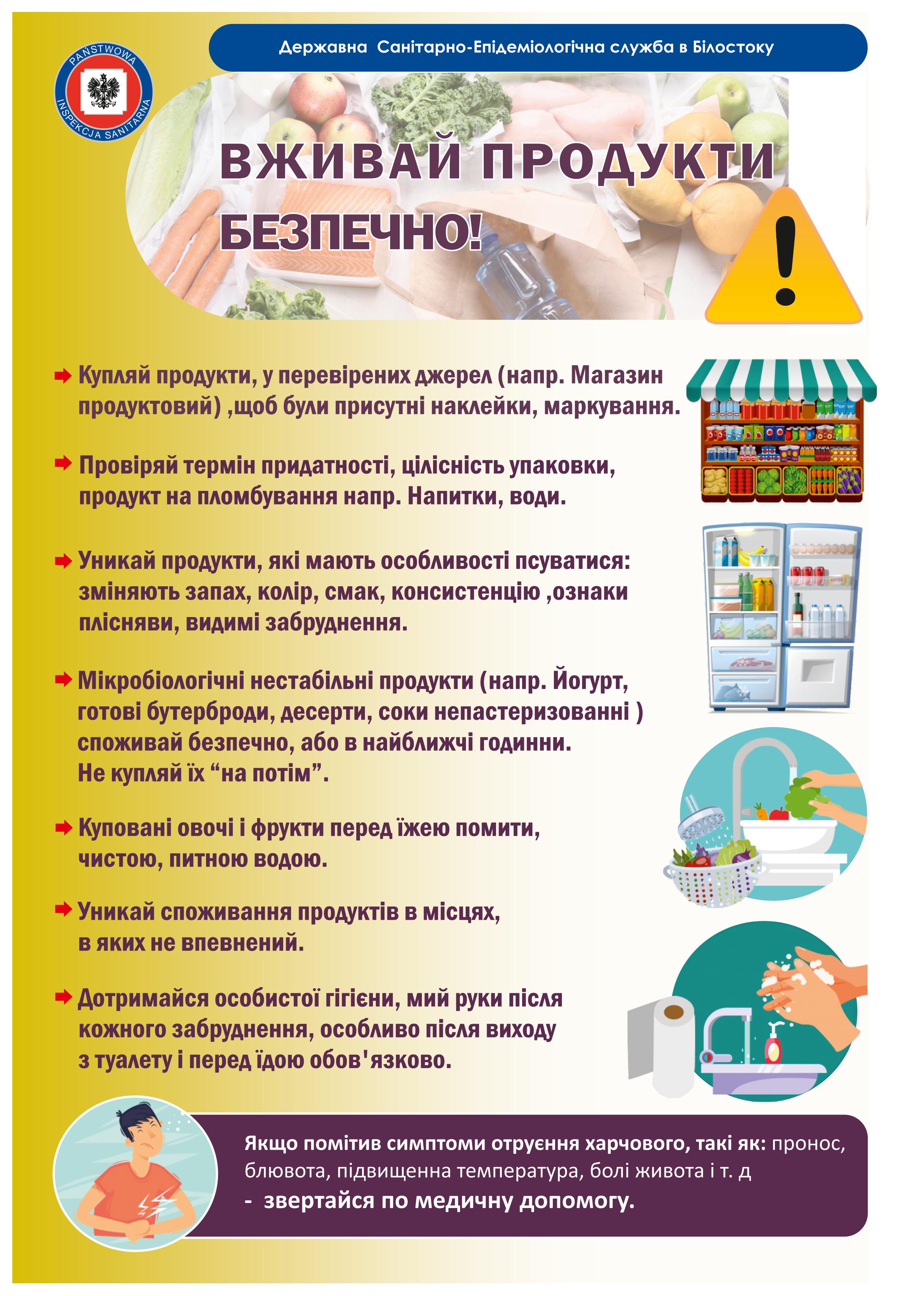 ВЖИВАЙ ПРОДУКТИ БЕЗПЕЧНО / SPOŻYWAJ ŻYWNOŚĆ BEZPIECZNIE Materiały ВЖИВАЙ ПРОДУКТИ БЕЗПЕЧНО_SPOŻYWAJ ŻYWNOŚĆ BEZPIECZNIE Ulotka_Spożywaj_żywność_bezpiecznie_j_polski_i_ukraiński.pdf 4.15MB Zdjęcia (2) Pokaż zdjęcie 1 z galerii. Pokaż zdjęcie 2 z galerii.