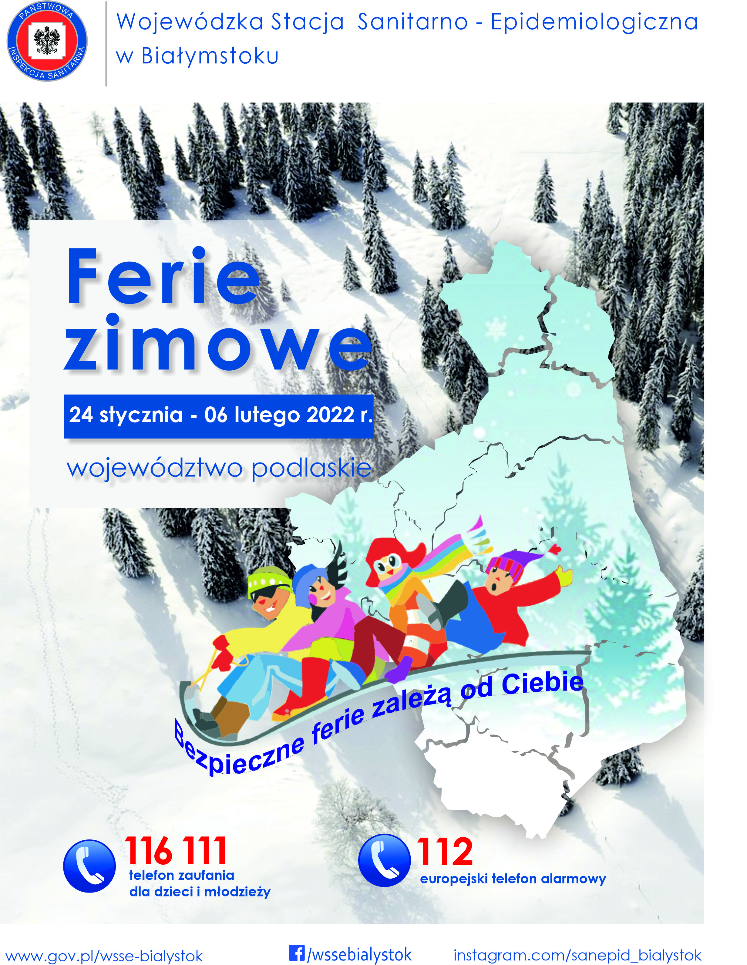 W województwie podlaskim zaczynają się ferie zimowe. Zwracamy uwagę, że bezpieczny wypoczynek zależy głównie od Ciebie! Korzystając z zimowego wypoczynku, stosuj się do kilku prostych zasad: