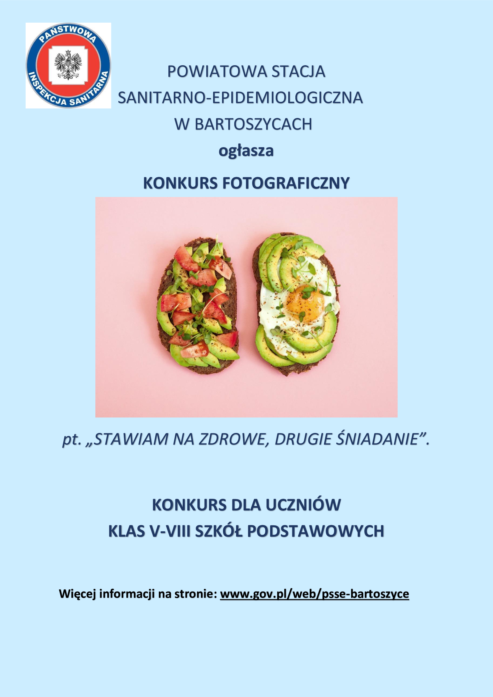 Państwowy Powiatowy Inspektor Sanitarny w Bartoszycach informuje, iż organizowany jest konkurs fotograficzny pt. „Stawiam na zdrowe, drugie śniadanie”.