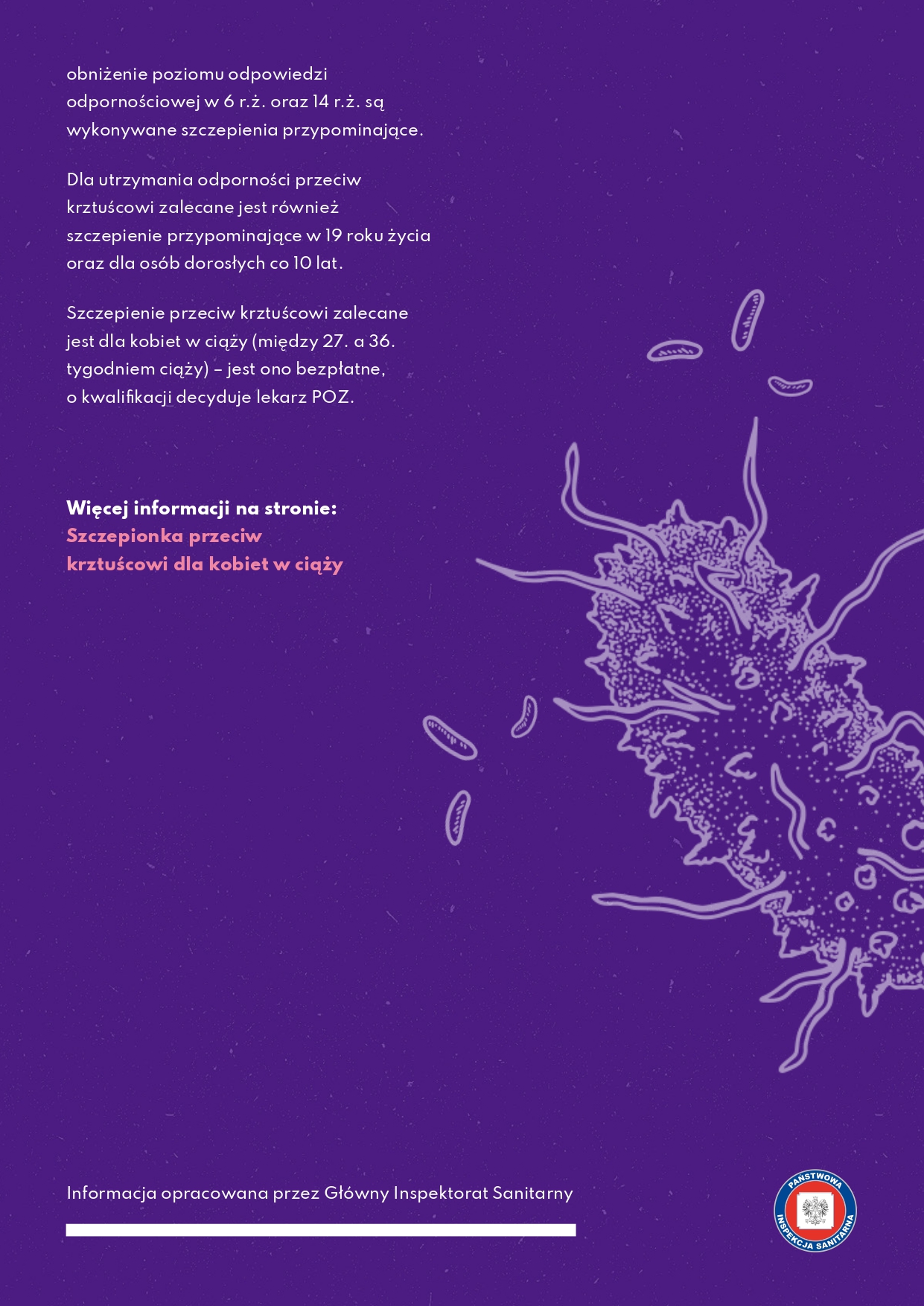 Warte uwagi jest to, że od 15 października 2024 r. ruszyły szczepienia przeciw krztuścowi dla kobiet w ciąży. Mogą one BEZPŁATNIE zaszczepić się w przychodniach podstawowej opieki zdrowotnej (POZ). To szczepienie chroni kobietę zarówno w ciąży, jak i po porodzie oraz noworodka przed zachorowaniem i hospitalizacją w pierwszych miesiącach życia.