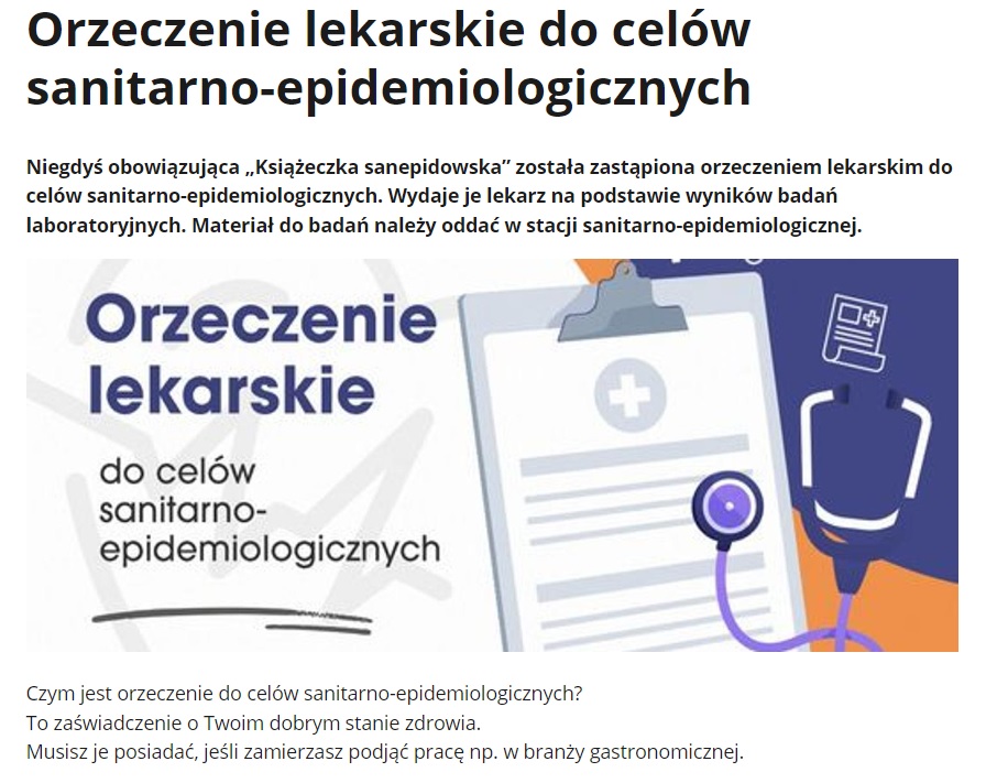 Orzeczenie lekarskie do celów sanitarno-epidemiologicznych