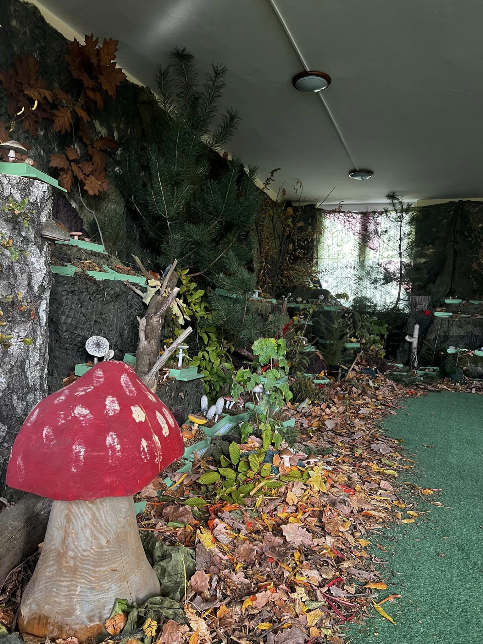 Wystawa prezentuje 61 atrap grzybów jadalnych i trujących, które zostały wykonane ręcznie w skali 1:1, odwzorowując ich naturalne środowisko. Eksponaty grzybów zostały udostępnione przez Wojewódzką Stację Sanitarno-Epidemiologiczna w Warszawie. Na wystawie znajdują się także tablice edukacyjne pozwalające poznać budowę grzybów, ich zróżnicowanie oraz zasady bezpiecznego przebywania w lesie.