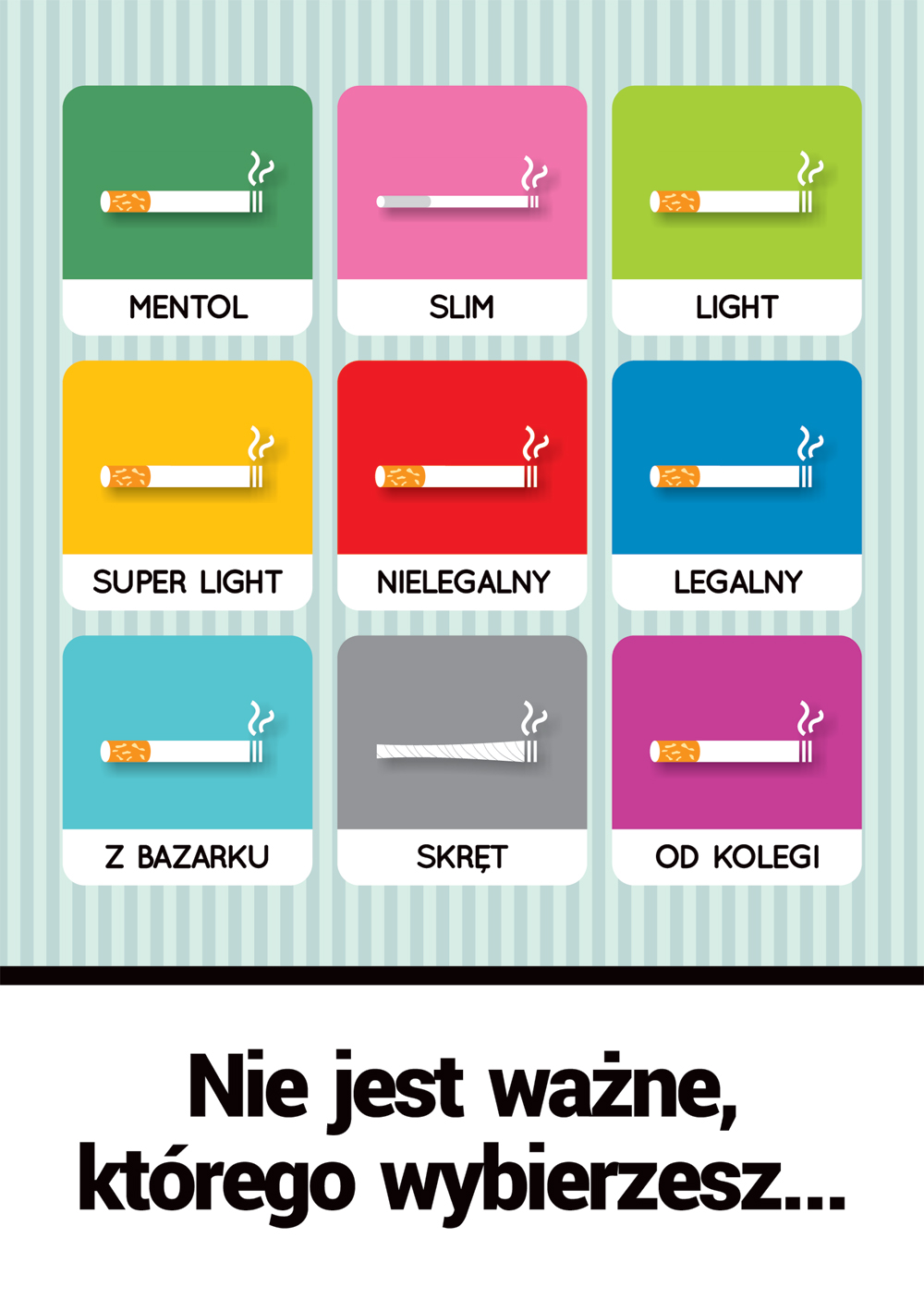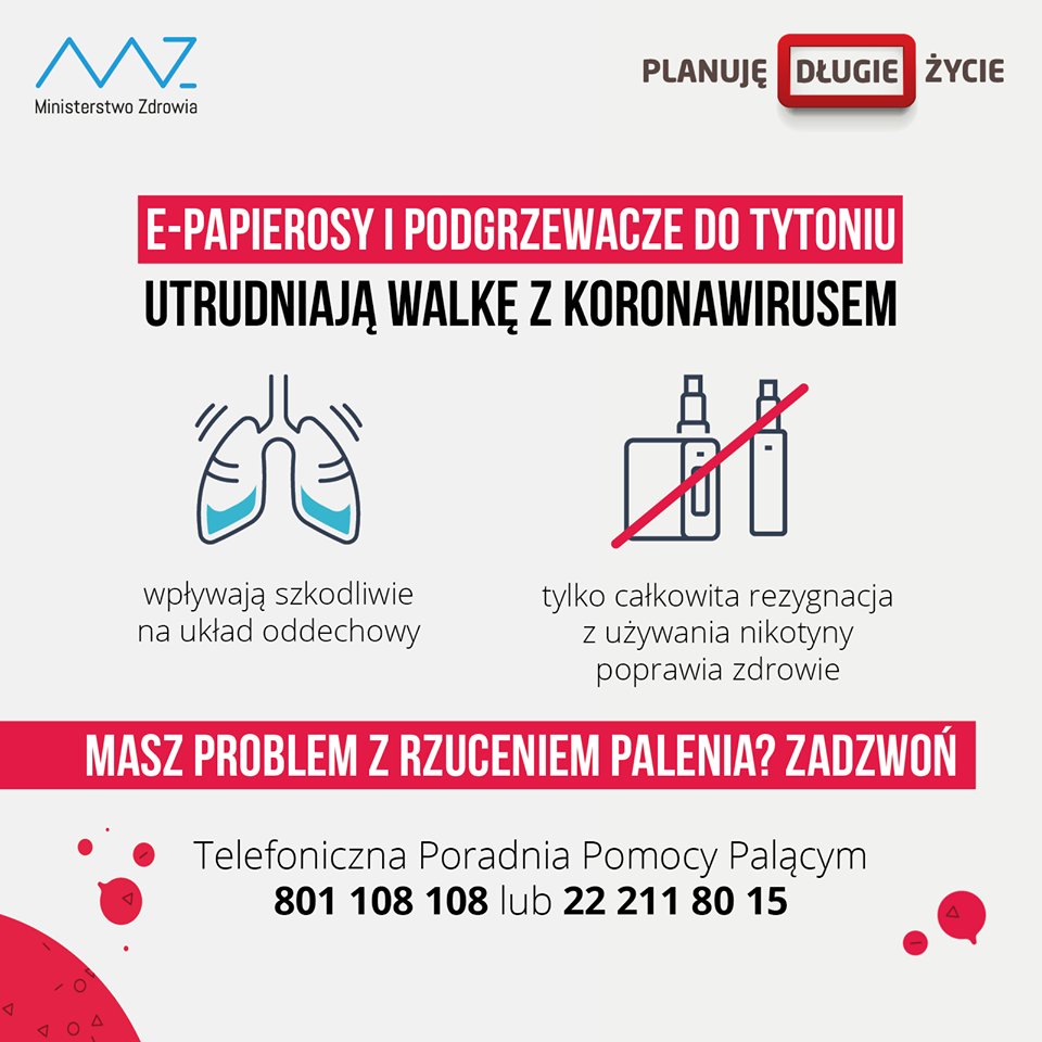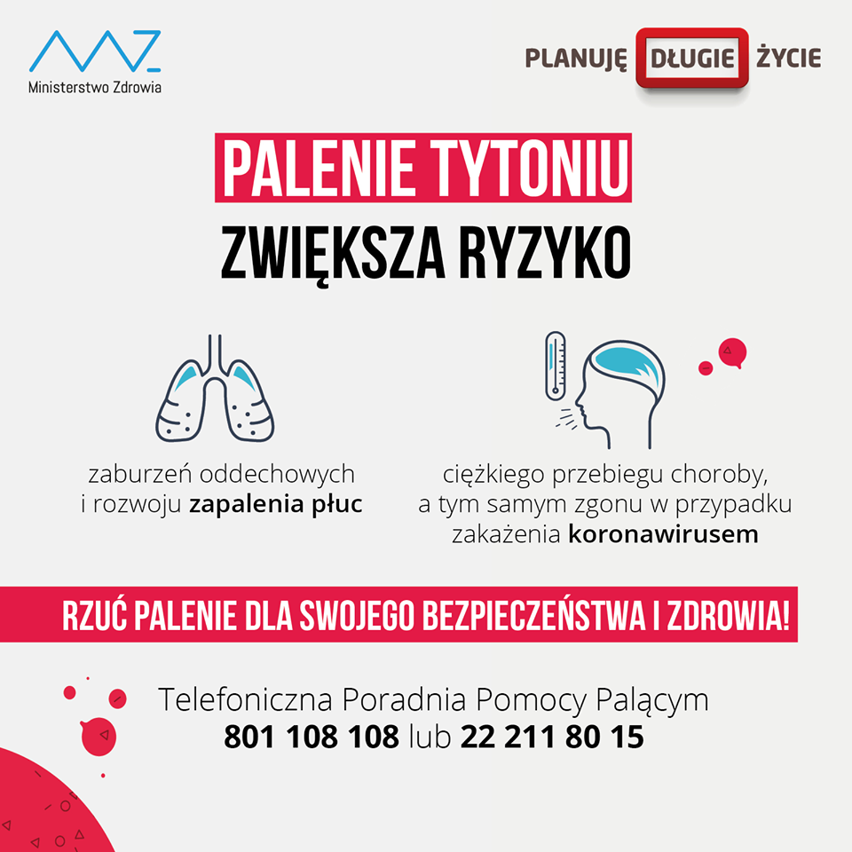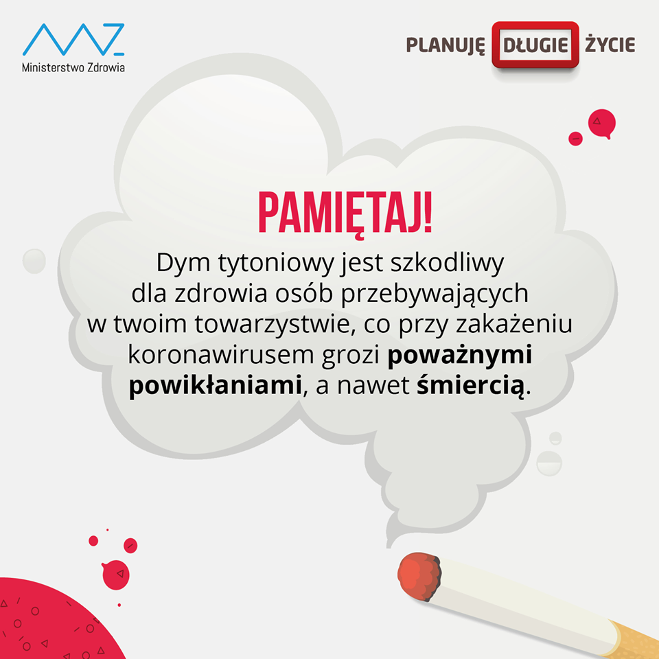 31 maja 2020 r. będziemy obchodzić Światowy Dzień Bez Tytoniu, który został zainicjowany przez Światową Organizację Zdrowia w 1987r. Celem kampanii jest zwrócenie uwagi na powszechność nałogu palenia tytoniu, także papierosów elektronicznych oraz podniesienie świadomości społeczeństwa na temat skutków zdrowotnych używania tytoniu i narażania na dym tytoniowy.