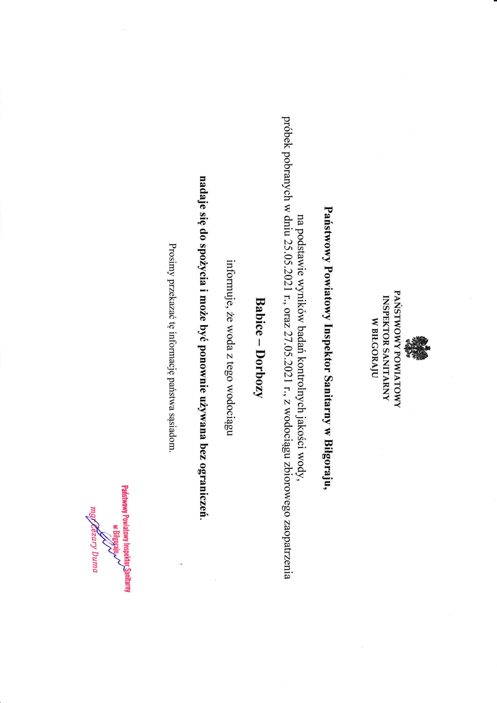 Komunikat o jakości wody w wodociągu Babice - Dorbozy z dnia 01.06.2021r. Zdjęcia (1) Pokaż zdjęcie 1 z galerii.