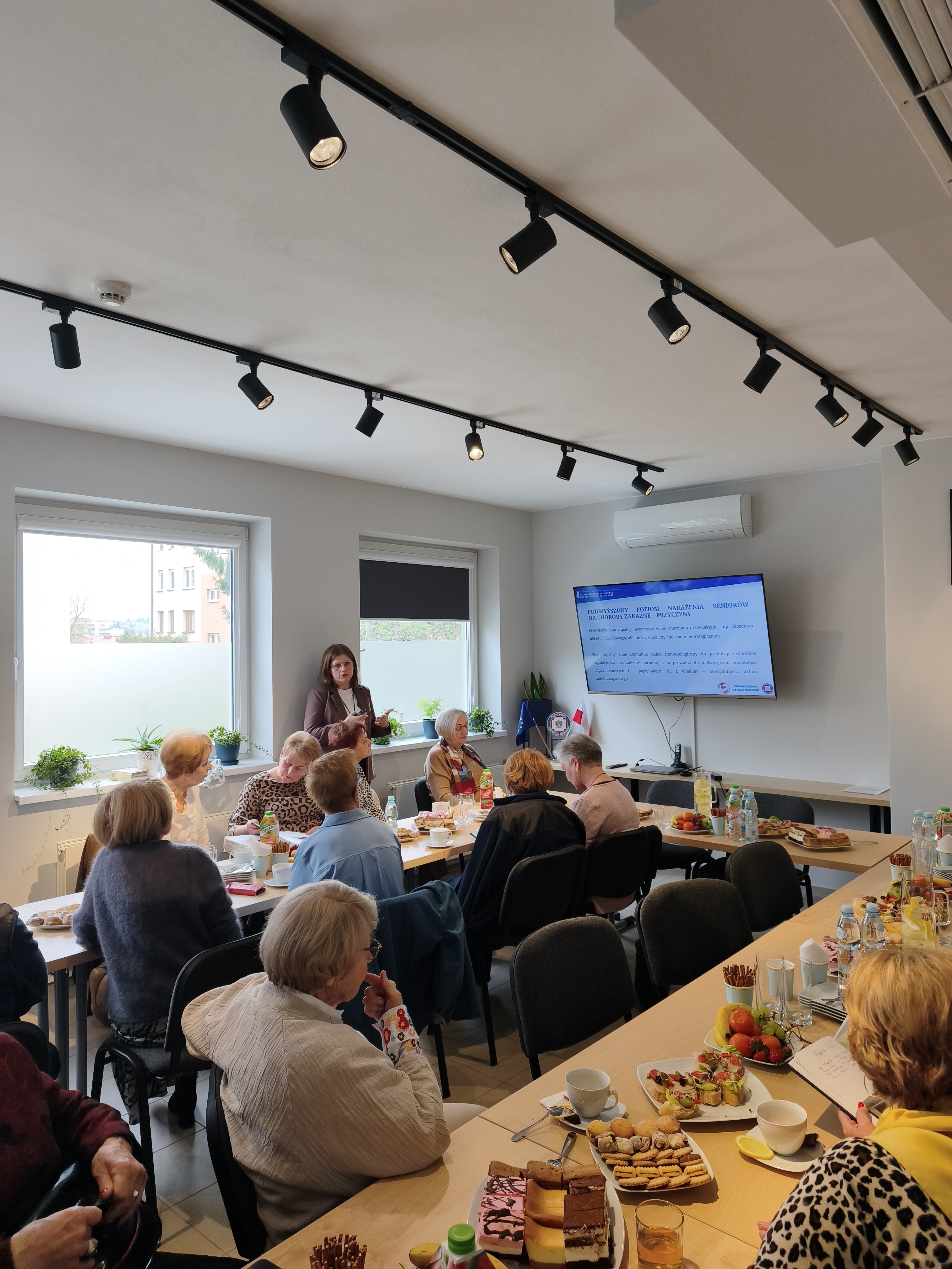 Jednym z głównych elementów spotkania były działania realizowane w ramach programu „Senior w roli głównej”. Uczestnicy mieli okazję poszerzyć swoją wiedzę na temat szczepień ochronnych dedykowanych osobom starszym, a także dowiedzieć się więcej o założeniach i celach samego programu. Istotnym punktem spotkań była również edukacja w zakresie rozpoznawania fałszywych informacji (fake newsów), co stanowi szczególnie ważne zagadnienie w dobie powszechnego dostępu do informacji. Podczas wydarzenia nie zabrakło także wykładu poświęconego profilaktyce chorób odkleszczowych. Uczestnicy poznali zasady ochrony przed kleszczami, objawy chorób przenoszonych przez te pasożyty oraz sposoby postępowania w przypadku ukąszenia.