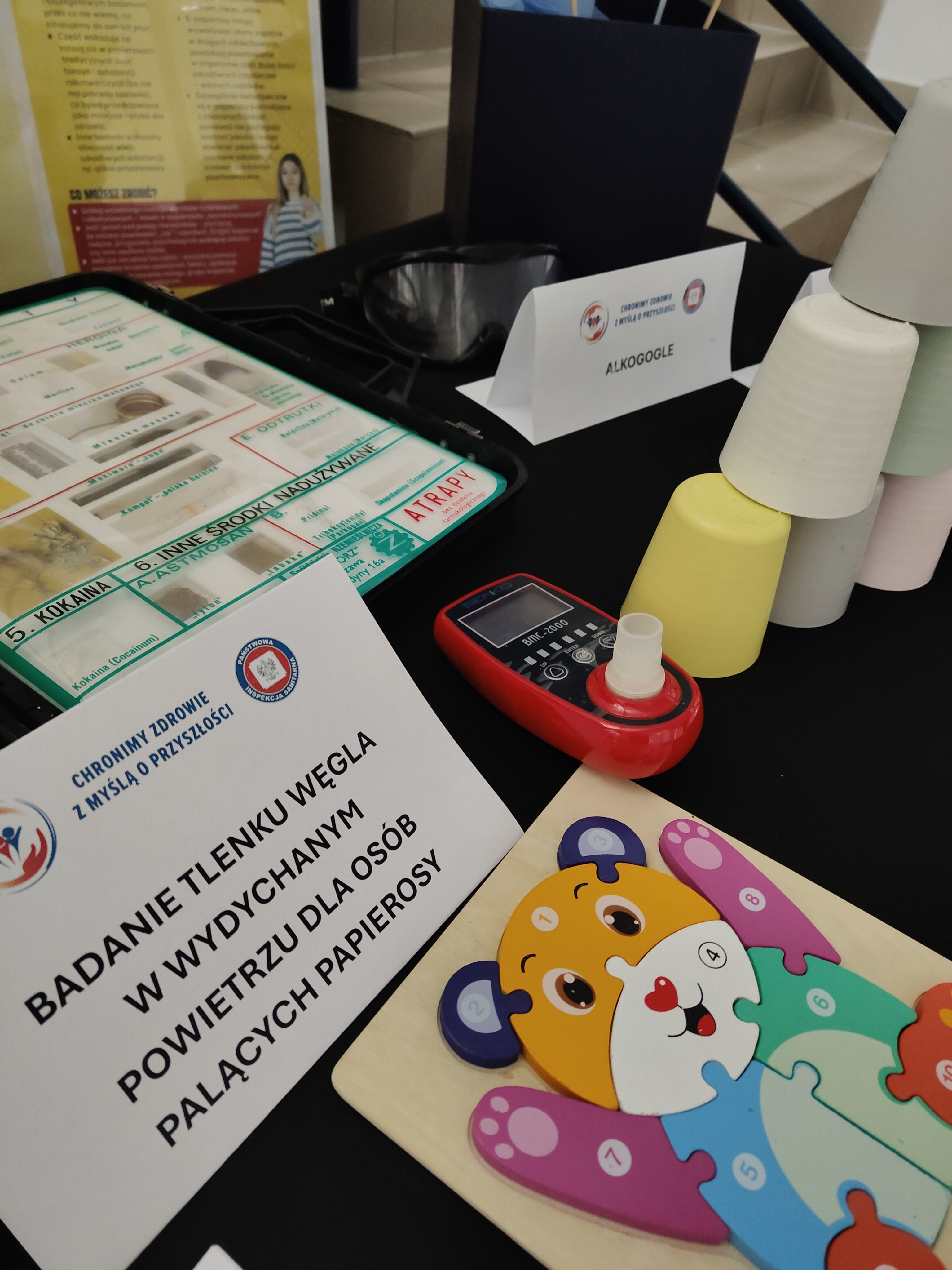 Na uczestników czekały liczne stoiska edukacyjne, na których można było uzyskać informacje dotyczące higieny osobistej, profilaktyki raka piersi, chorób odkleszczowych oraz profilaktyki uzależnień. Dużym zainteresowaniem cieszyły się również aktywności praktyczne – uczestnicy mieli możliwość wykonania ćwiczeń w specjalnych alkogoglach i narkogoglach, które symulują stan po spożyciu alkoholu i substancji psychoaktywnych. Dodatkowo dostępna była możliwość wykonania pomiaru tlenku węgla w wydychanym powietrzu.