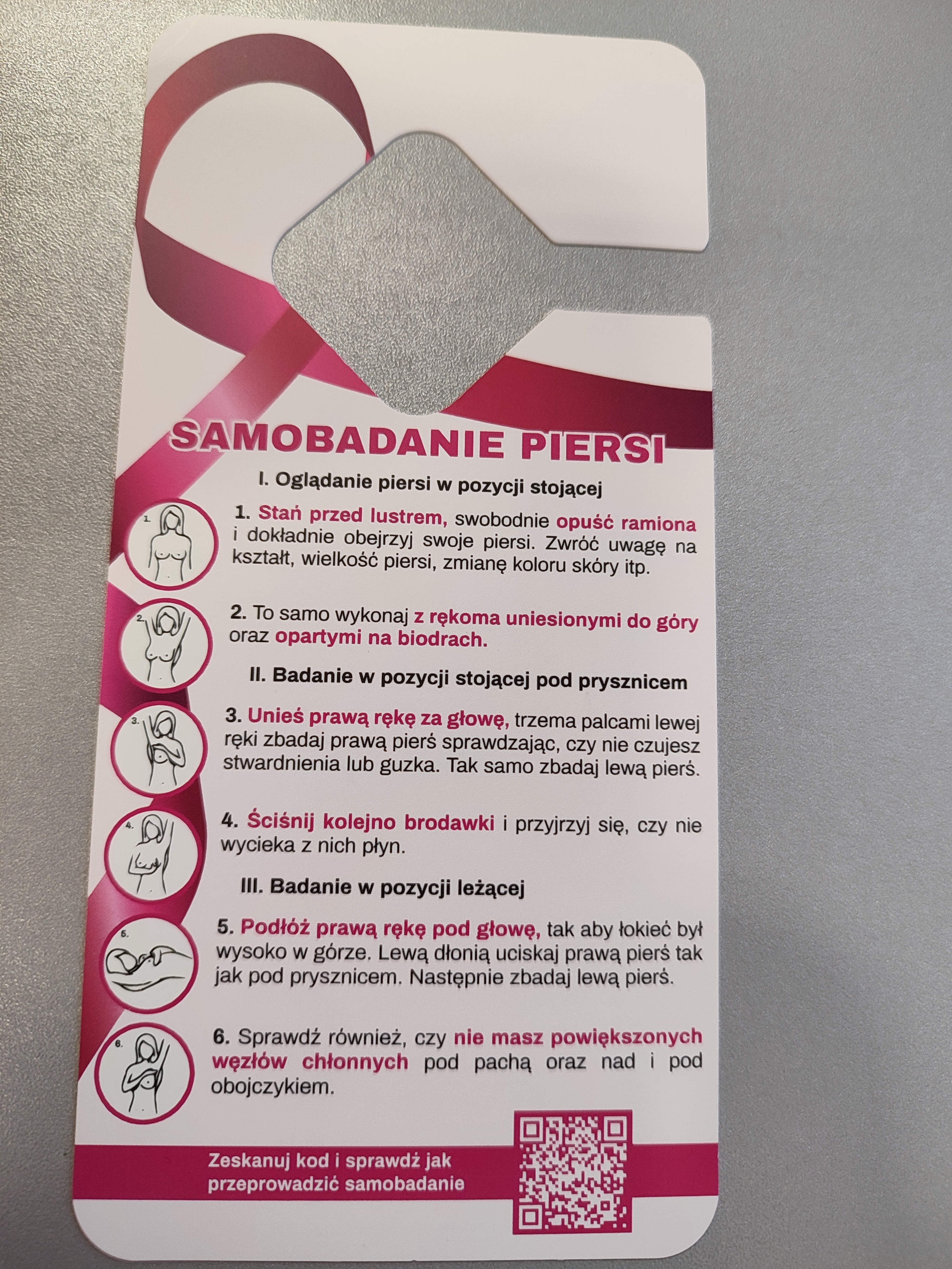 z instrukcją samobadania piersi oraz kodem, który po zeskanowaniu przekieruje do filmiku