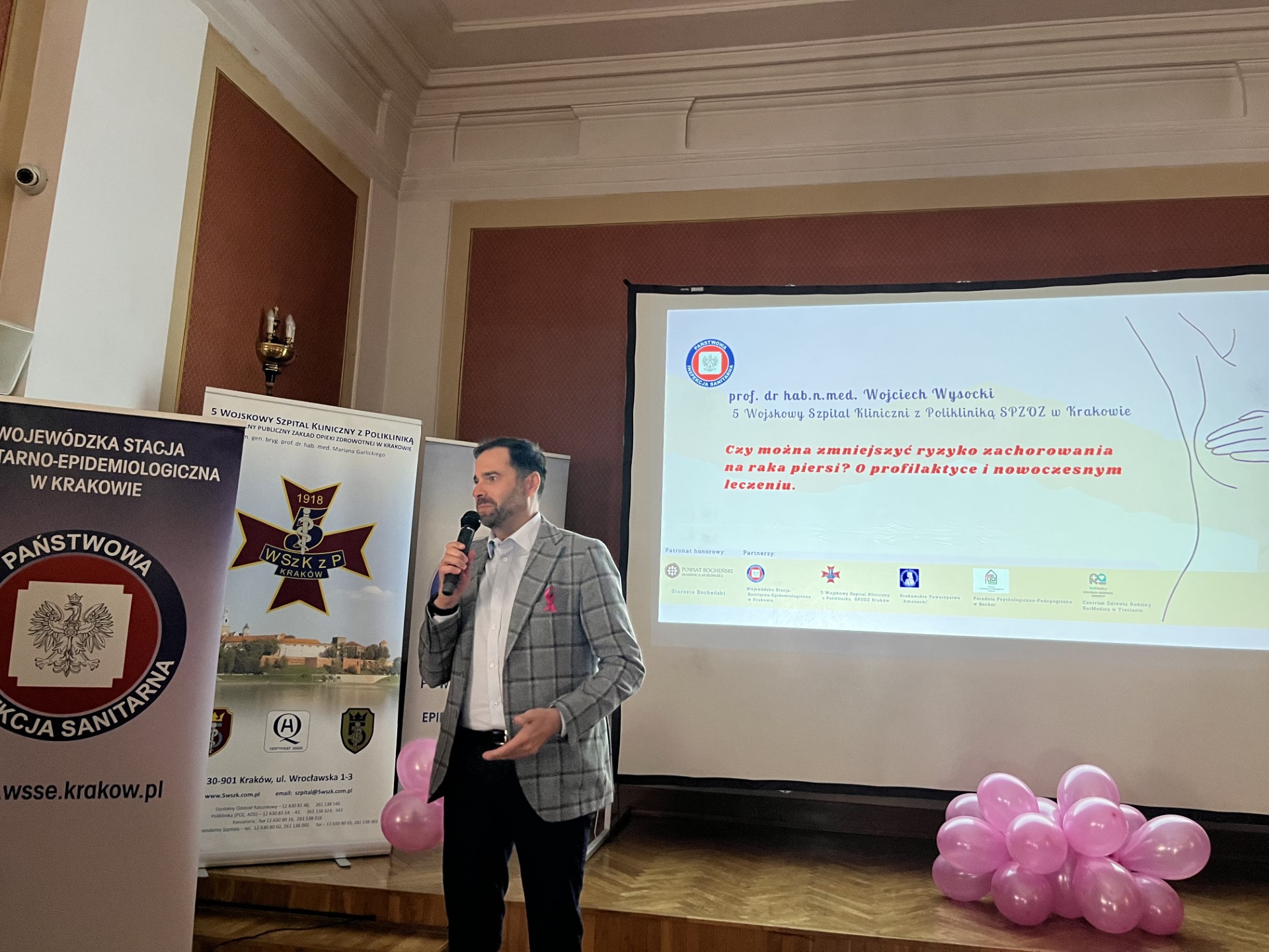 Gościem specjalnym wydarzenia był prof.dr hab.n.med. Wojciech Wysocki z 5 Wojskowego Szpitala Klinicznego z Polikliniką SPZOZ w Krakowie, który mówił o profilaktyce i nowoczesnym leczeniu oraz odpowiedział na pytanie: „Czy można zmniejszyć ryzyko zachorowania na raka piersi?”.