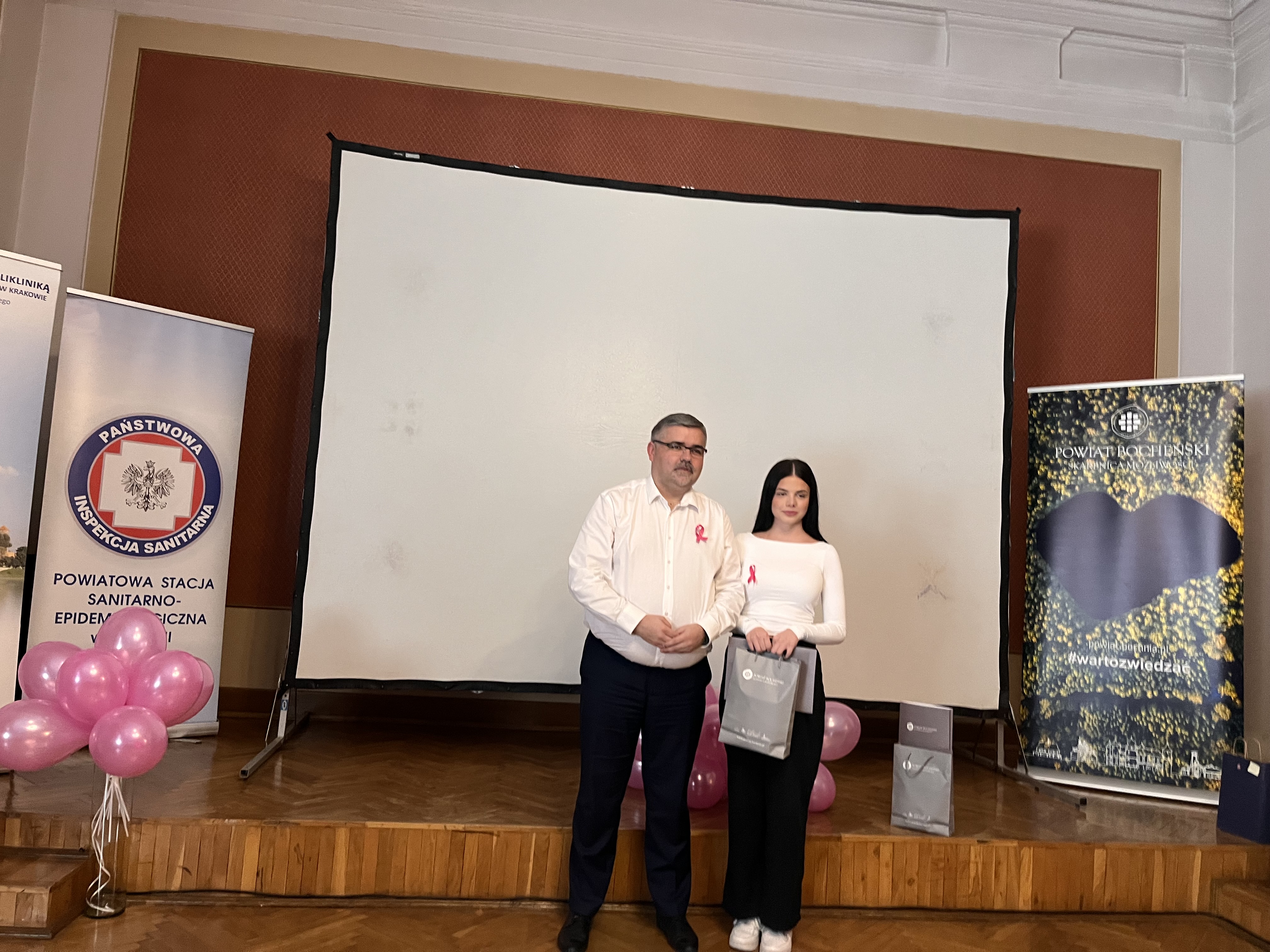 Konferencja była okazją do ogłoszenia wyników oraz wręczenia nagród laureatom konkursu „Dotykam, badam, żyję!” na spot dotyczący profilaktyki raka piersi. Konkurs zorganizowany został przez Powiatową Stację Sanitarno-Epidemiologiczną w Bochni wspólnie ze Starostwem Powiatowym w Bochni. Skierowany był do młodzieży ze szkół ponadpodstawowych z terenu powiatu bocheńskiego. Fundatorem nagród w konkursie był Starosta Bocheński.
