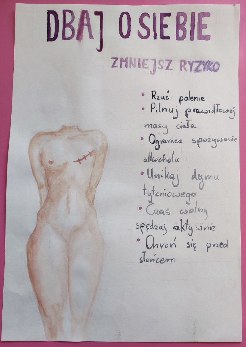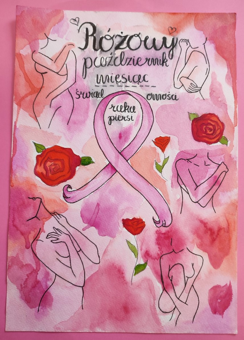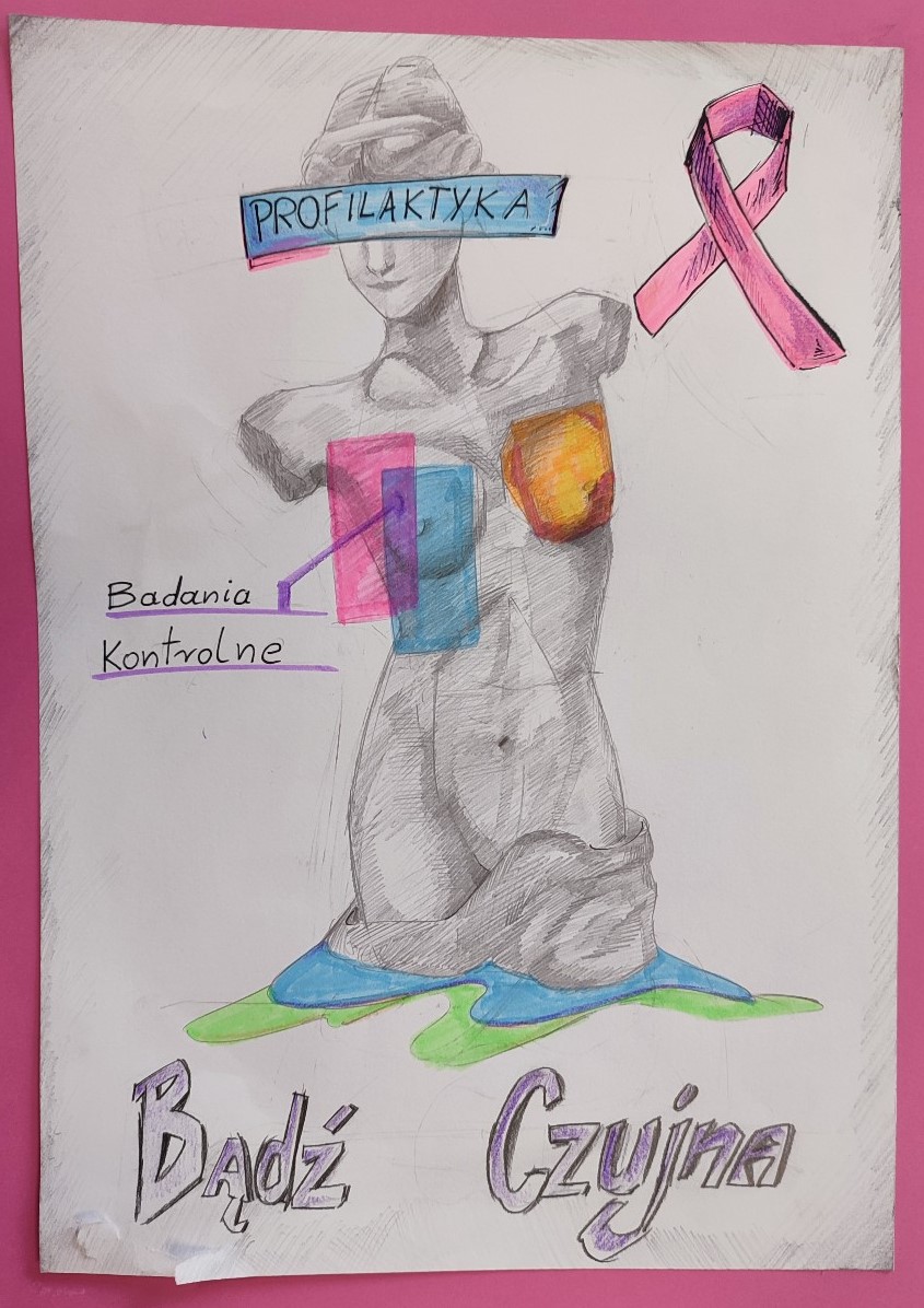 Październik uznawany jest na całym świecie za Miesiąc Świadomości Raka Piersi, a jego symbolem jest różowa wstążeczka. W tym szczególnym okresie podejmujemy tematy związane z profilaktyką, diagnostyką oraz nowoczesnym leczeniem nowotworów piersi. Młodzież z Państwowego Liceum Sztuk Plastycznych w Nowym Wiśniczu, pod okiem wychowawcy Anny Domas włączyła się w kampanię edukacyjną „Ja już. A ty?”, promując profilaktykę i czujność onkologiczną oraz zachęcają do samobadania, przygotowując bardzo ciekawe prace nawiązujące po profilaktyki raka piersi. Zapraszamy do ich obejrzenia.