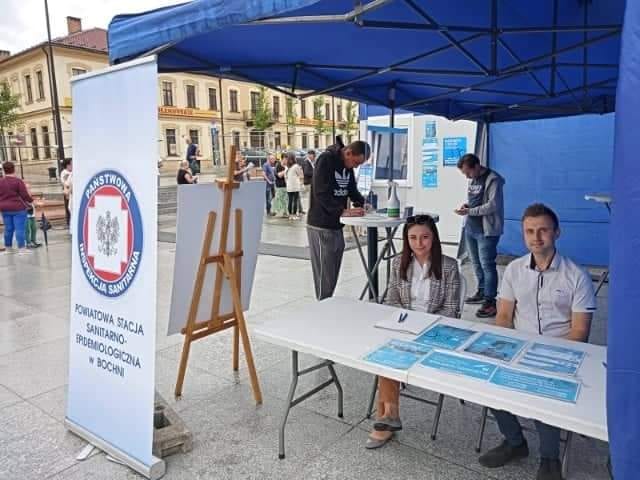 W dniu 3 lipca 2021 roku w ramach współpracy z Wydziałem Promocji i Rozwoju Miasta Bochnia przedstawiciele Państwowej Inspekcji Sanitarnej w Bochni, w związku z akcją #SZCZEPIMYSIE W BOCHNI odbywającą się na bocheńskim rynku, informowali m. in. o szczepieniach, kwarantannie i innych ważnych dla społeczeństwa zagrożeniach epidemiologicznych.