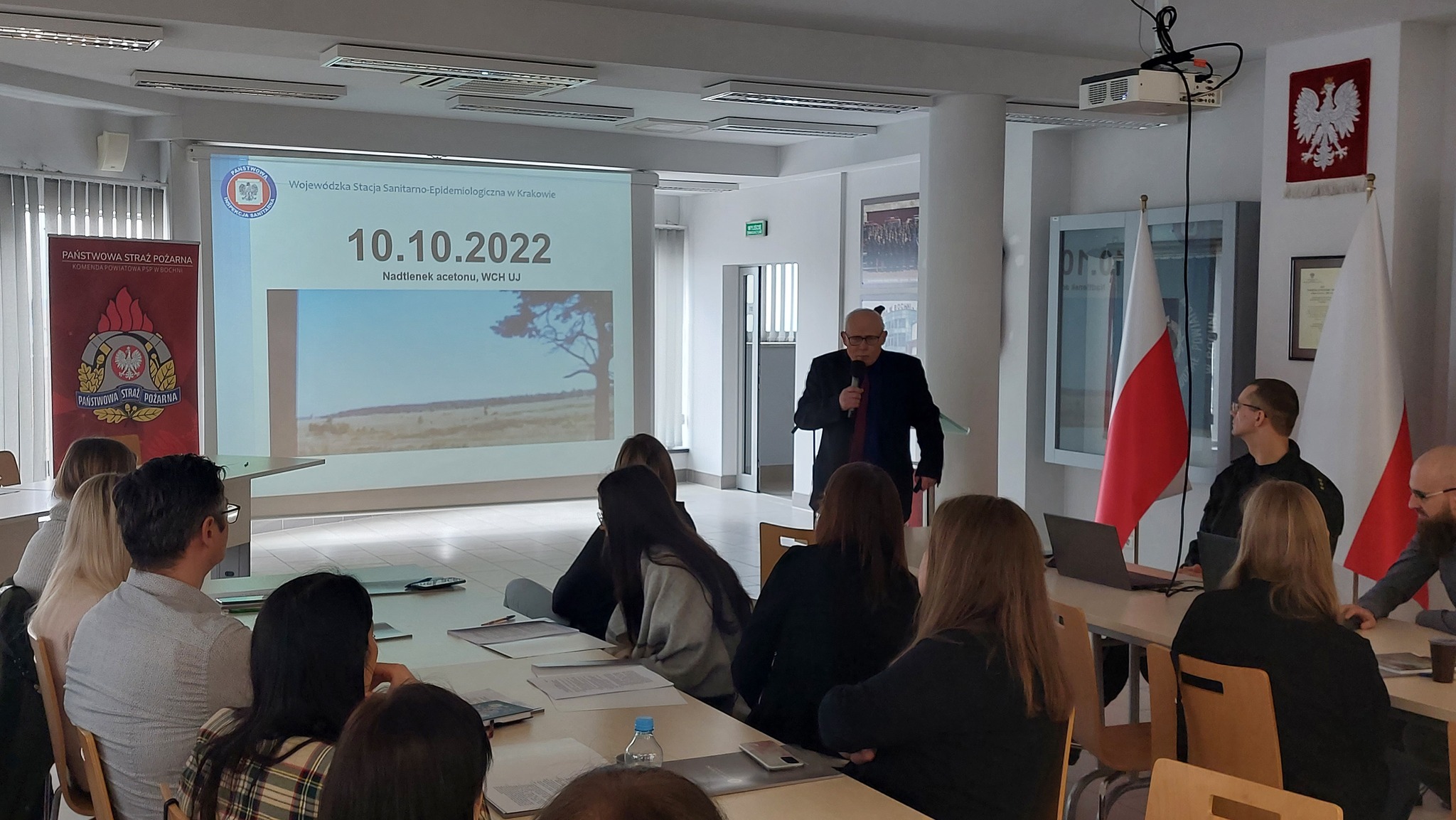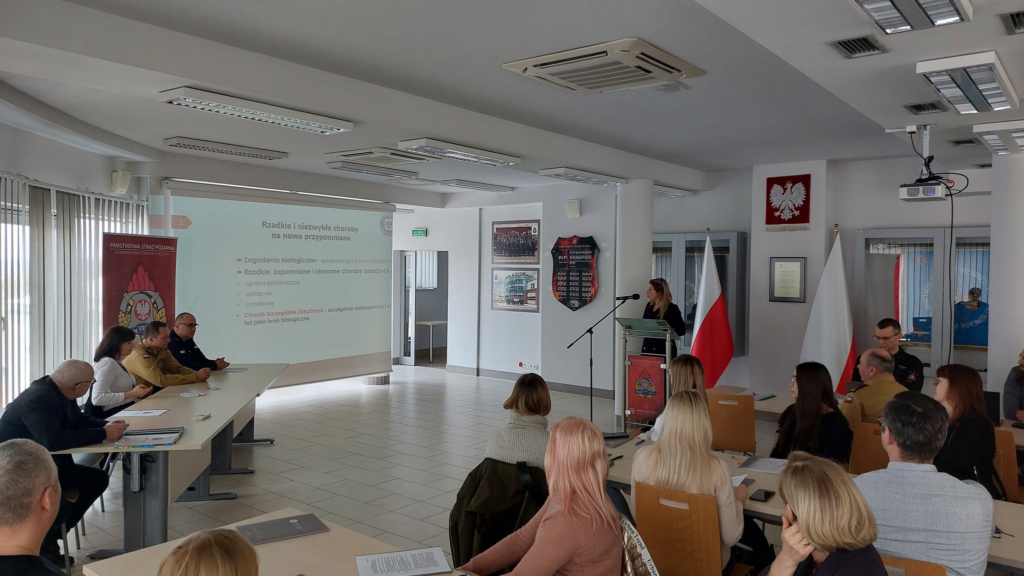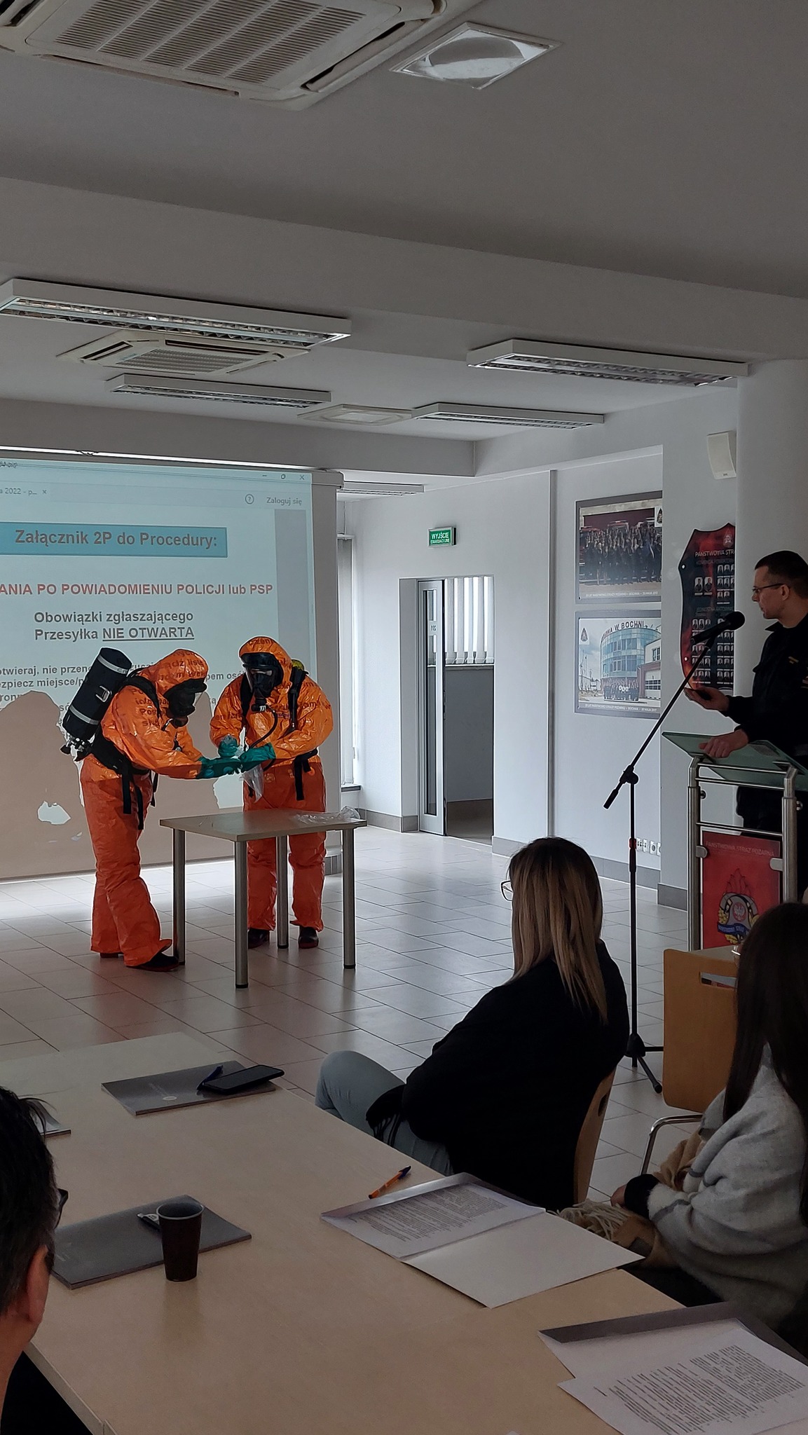 Mając na uwadze zagrożenia związane z możliwością odebrania przesyłki mogącej stanowić zagrożenie chemiczne, biologiczne, radiacyjne lub zagrożenie wybuchem 7 marca w siedzibie Państwowej Straży Pożarnej w Bochni odbyło się szkolenie "Postępowanie po ujawnieniu przesyłki potencjalnie niebezpiecznej, w tym przedstawienie algorytmu postępowania i współdziałania przez służby w przypadku otrzymania przesyłki stwarzającej zagrożenie: biologiczne, chemiczne i radiacyjne", którego organizatorem był Starosta Bocheński. Inicjatorem wydarzenia był Państwowy Powiatowy Inspektor Sanitarny w Bochni - Halina Bielec, która wygłosiła prelekcję na temat "Rzadkie i niezwykłe choroby na nowo przypomniane". Wśród prelegentów znaleźli się także Komisarz Tomasz Dymura z Komendy Powiatowej Policji w Bochni z wykładem " Kształtowanie zachowań w przypadku podłożenia ładunku wybuchowego", Kapitan Grzegorz Gac z Komendy Państwowej Straży Pożarnej w Bochni omawiający "Schemat postępowania w przypadku przesyłek potencjalnie niebezpiecznych - Straż Pożarna" oraz Andrzej Sumlet - starszy specjalista ds. bezpieczeństwa i zarządzania kryzysowego w Wojewódzkiej Stacji Sanitarno-Epidemiologicznej w Krakowie z prelekcją "Postępowanie w przypadku potencjalnie niebezpiecznych przesyłek - Państwowa Inspekcja Sanitarna".