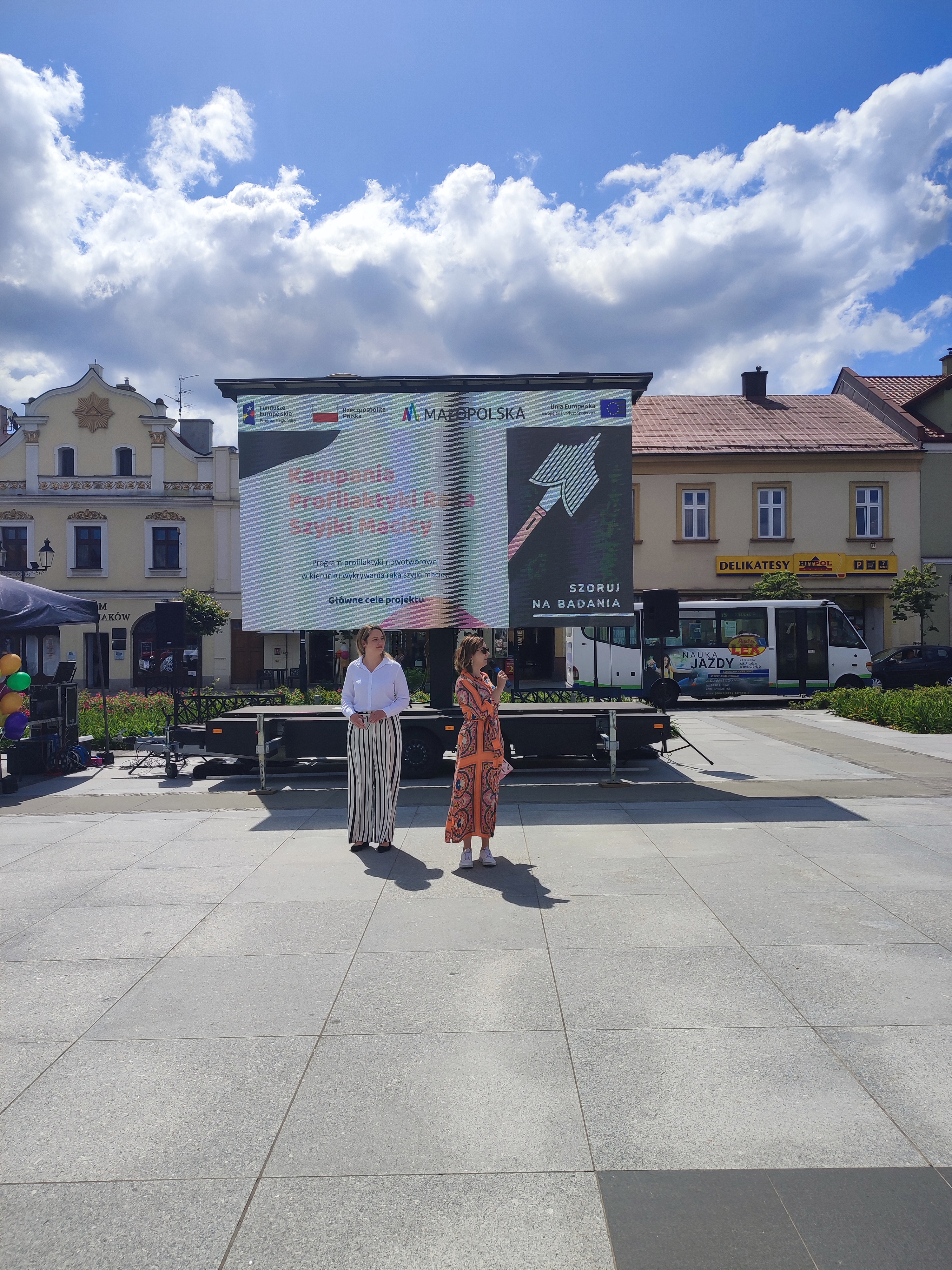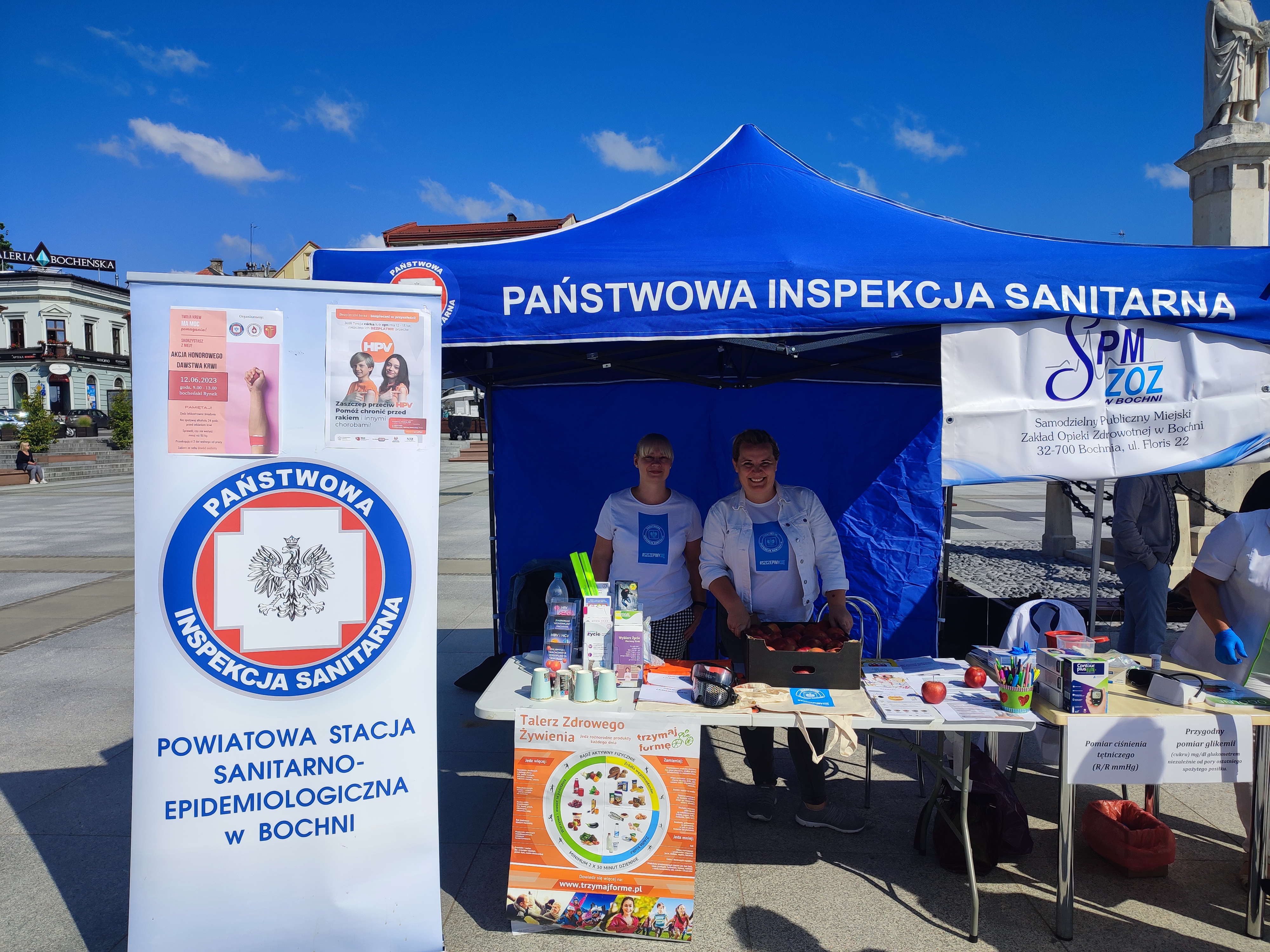 Od 1 czerwca 2023 r. ruszył program darmowych szczepień przeciwko HPV dla chłopców i dziewcząt w wieku 12 i 13 lat. PSSE w Bochni aktywnie włącza się w działania dotyczące promocji programu. 12 czerwca na bocheńskim Rynku zachęcaliśmy rodziców do podjęcia działań profilaktycznych oraz wręczaliśmy ulotki informujące w jaki sposób można zarejestrować dziecko na szczepienia. Ponadto Panie w ramach projektu „Szoruj na badania” miały możliwość udziału w darmowych prelekcjach i zasięgnięcia porad u ginekologa z krakowskiego Medistica Medical Group na temat profilaktyki raka szyjki macicy oraz cytologii.
