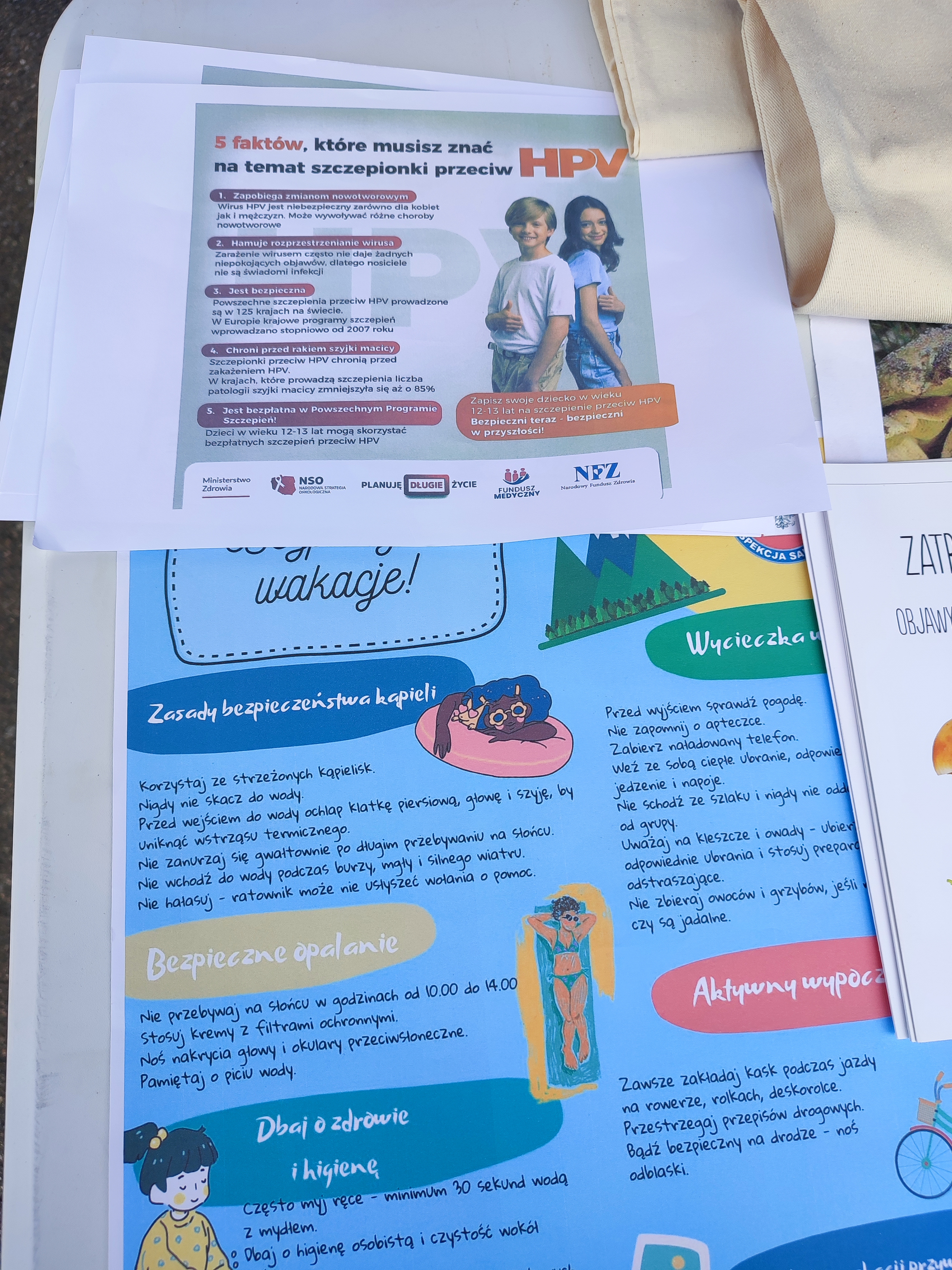 Także 13 czerwca w trakcie Pikniku Medycznego, który odbył się przy Zespole Placówek Oświatowych w Trzcianie przekazywaliśmy materiały edukacyjne oraz odpowiadaliśmy na pytania rodziców związane ze szczepieniami przeciwko HPV.