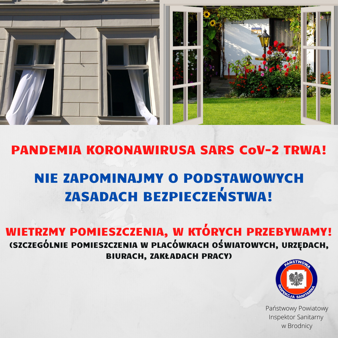 Państwowy Powiatowy Inspektor Sanitarny w Brodnicy podkreśla, iż w celu zachowania bezpieczeństwa zdrowotnego należy wszędzie, gdzie to możliwe organizować narady, spotkania, uroczystości, zwłaszcza w szkołach, w zakładach pracy, urzędach, instytucjach w trybie zdalnym.