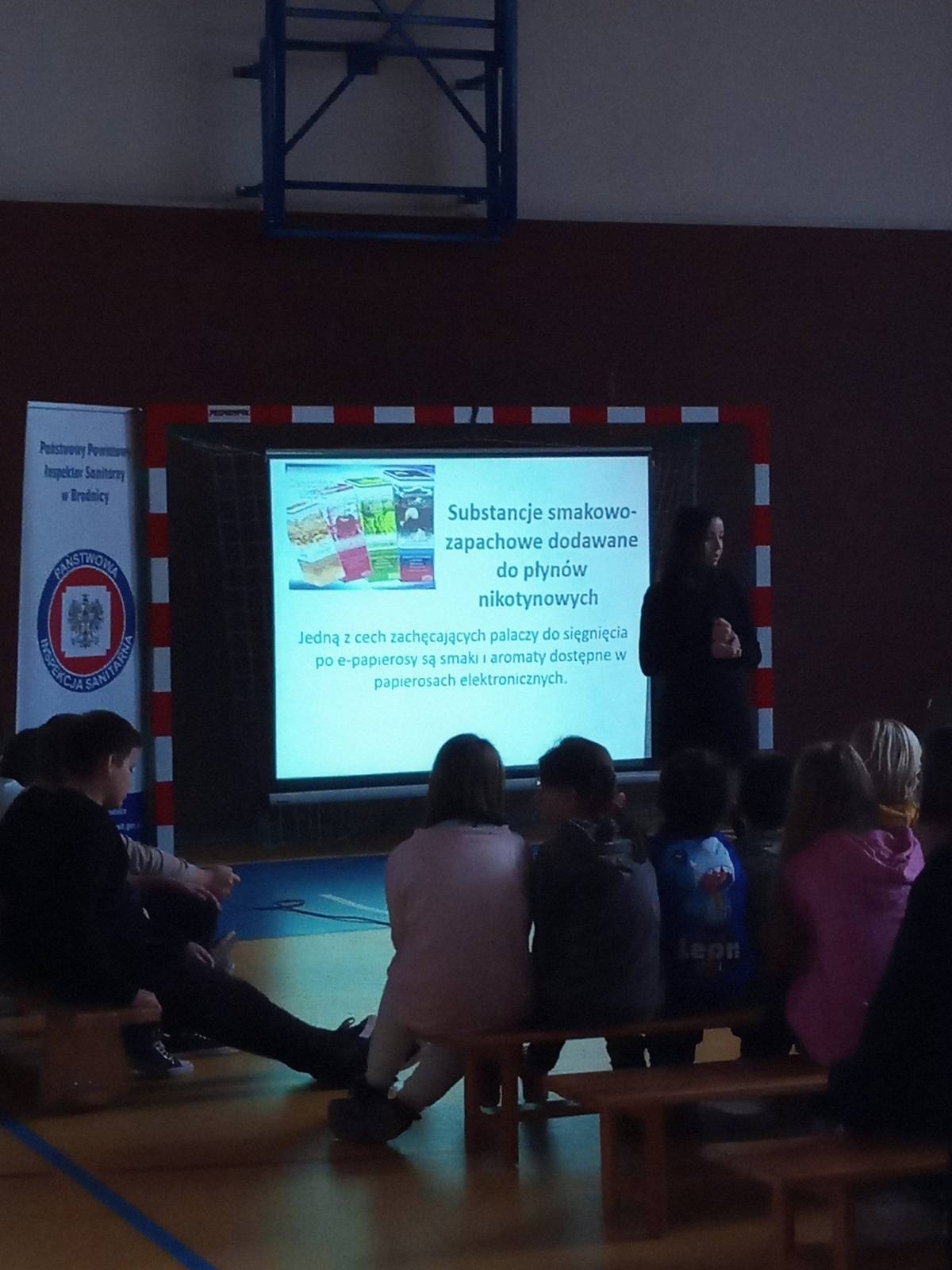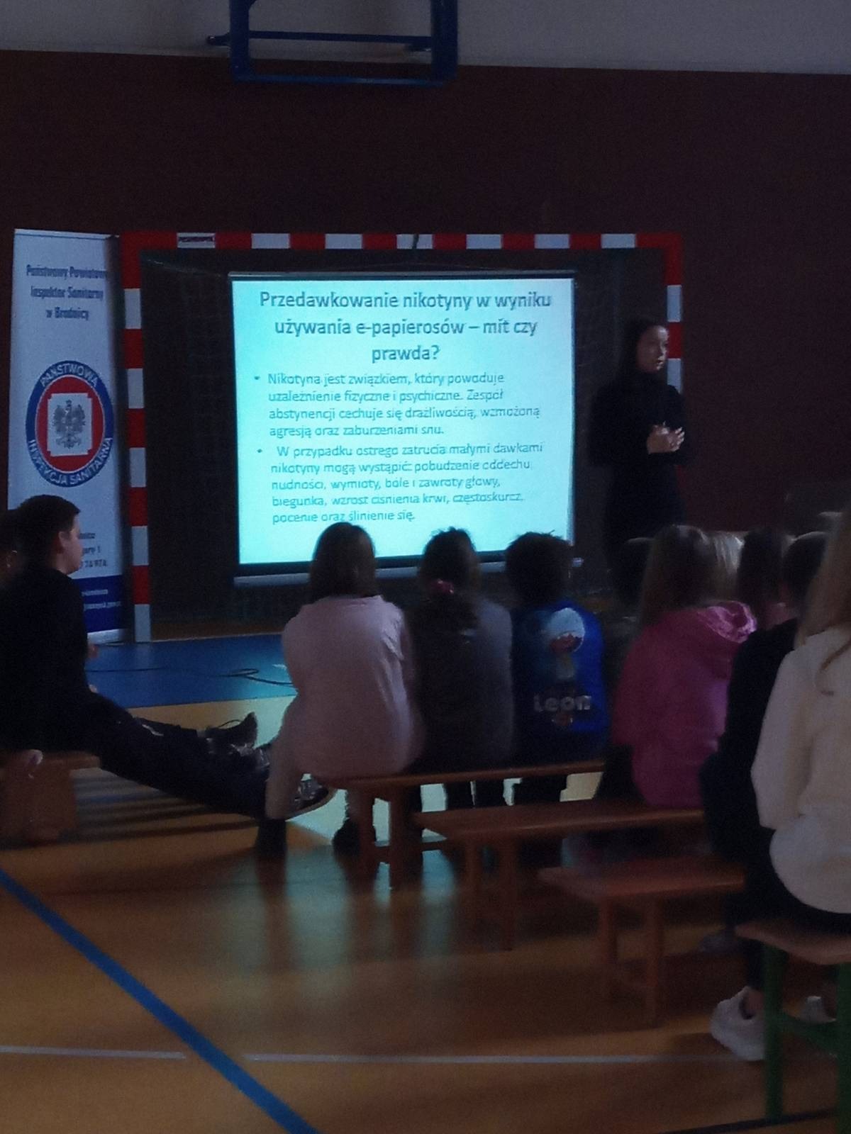 28 listopada 2022 r. przedstawiciel Państwowego Powiatowego Inspektora Sanitarnego w Brodnicy z pionu Profilaktyki Zdrowotnej przeprowadził w Szkole Podstawowej im. Małgorzaty Sulek w Drużynach prelekcję na temat szkodliwości wynikających z palenia papierosów, w tym e-papierosów.