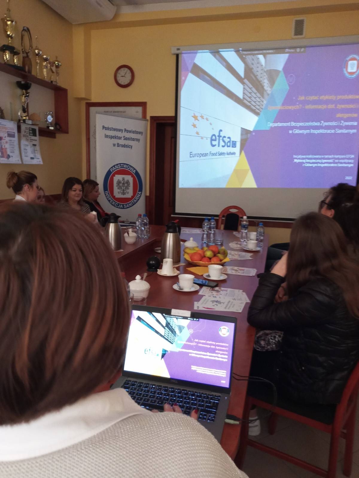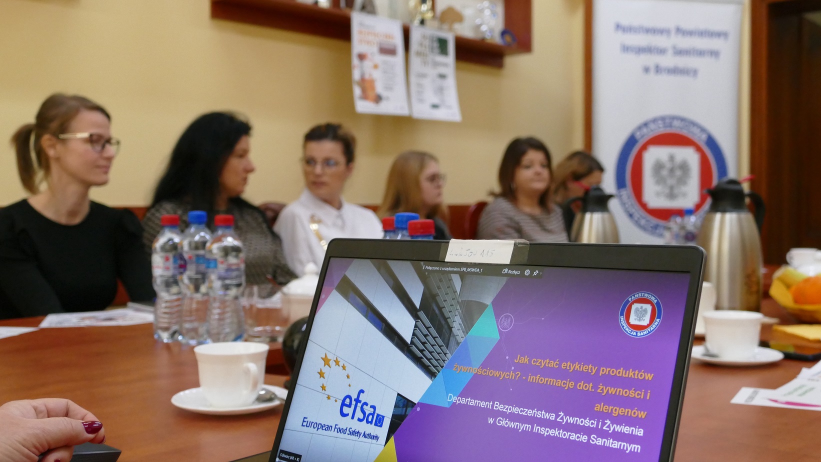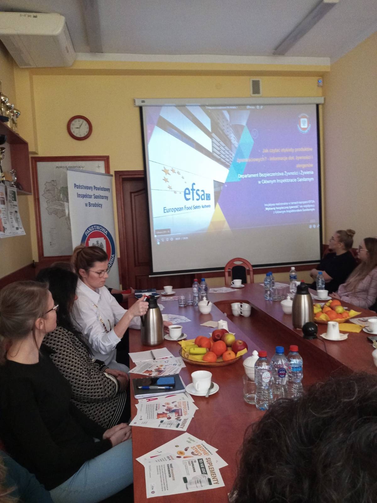 W dniu 9.11.2022 r. Państwowy Powiatowy Inspektor Sanitarny w Brodnicy wraz z pracownikami pionów: Higieny Żywności i Żywienia oraz Profilaktyki Zdrowotnej PSSE w Brodnicy zorganizowali przy współpracy Starosty Brodnickiego spotkanie edukacyjne w ramach Kampanii EFSA „Wybieraj bezpieczną żywność” dla pracowników Starostwa Powiatowego w Brodnicy.