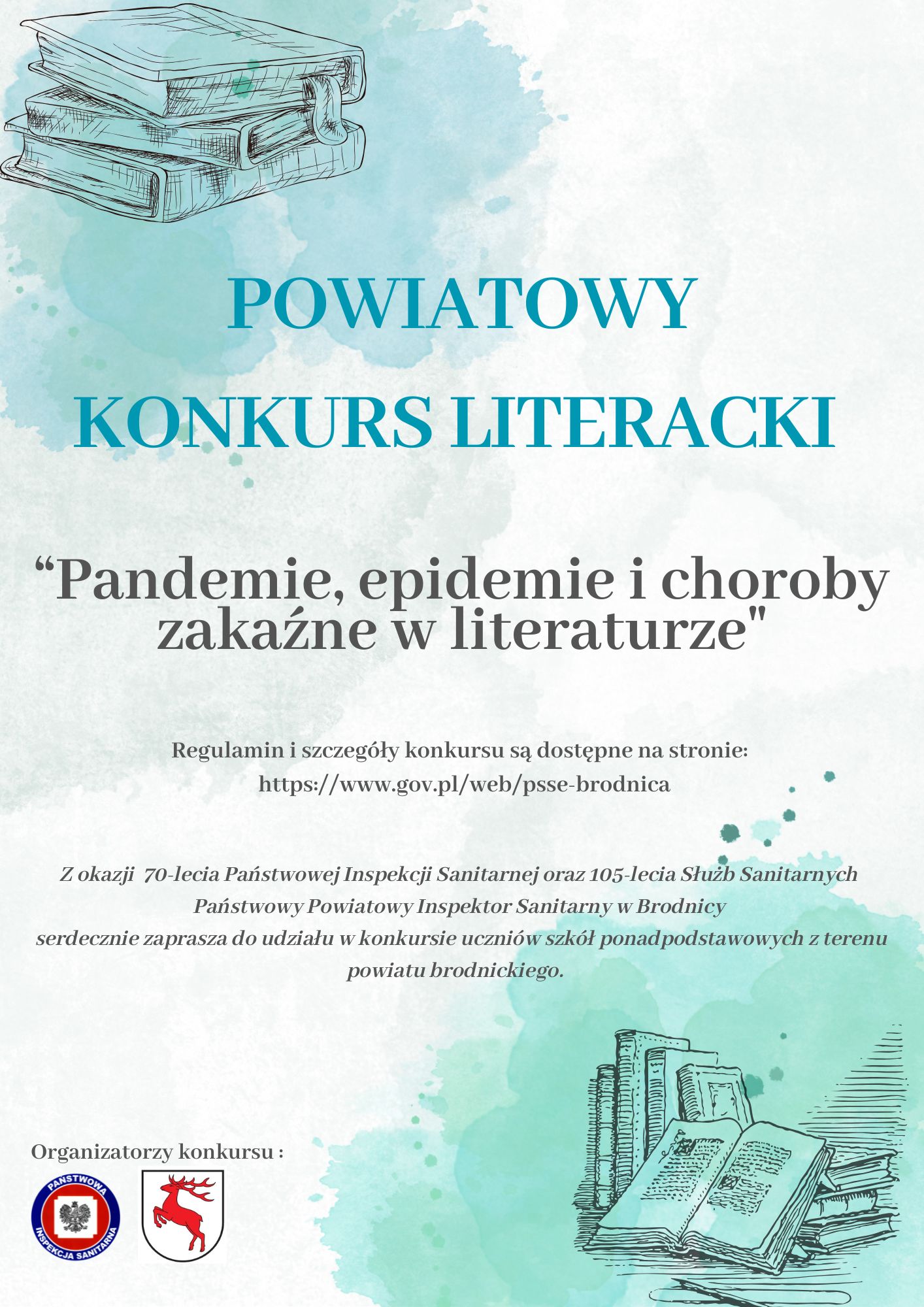 Państwowy Powiatowy Inspektor Sanitarny w Brodnicy serdecznie zaprasza uczniów szkół ponadpodstawowych do udziału w Powiatowym Konkursie Literackim ,,Pandemie, epidemie i choroby zakaźne w literaturze”.