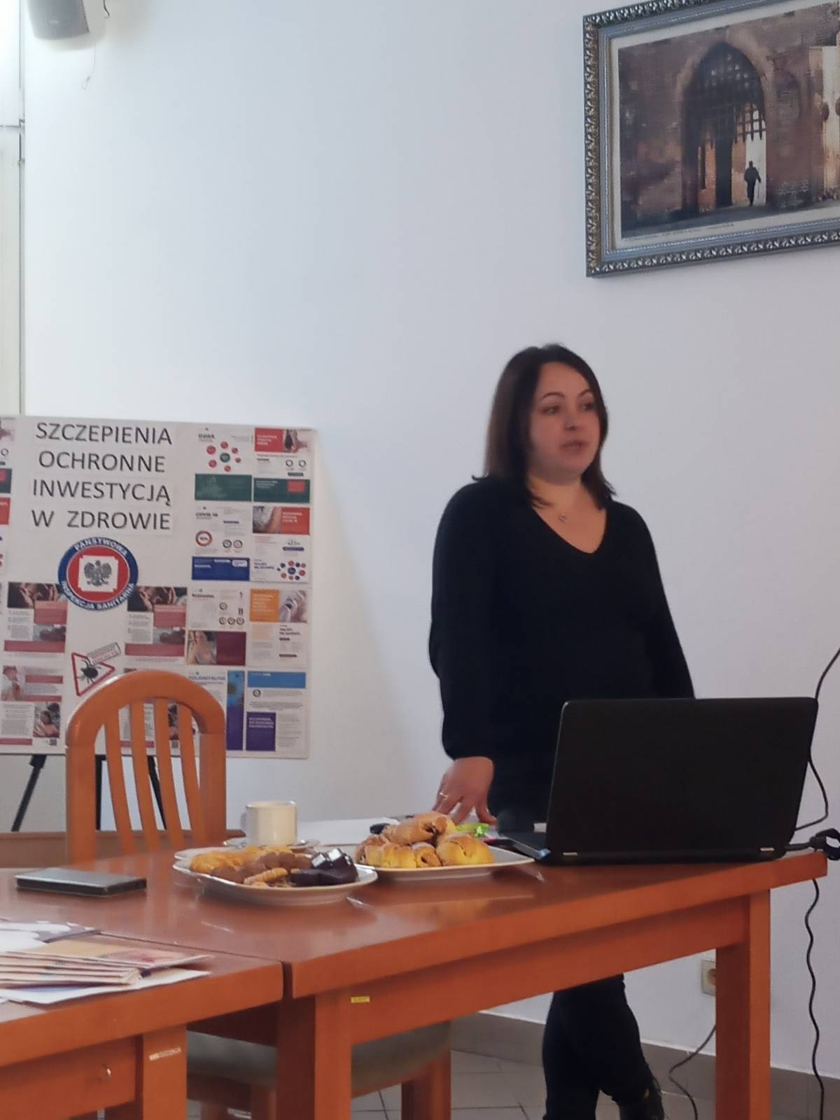 W ramach tego działania lekarz specjalista higieny ogólnej, asystent WSSE w Bydgoszczy Pani Ludmiła Pekar przeprowadziła prelekcję w języku ukraińskim oraz rozmowy indywidualne z osobami zainteresowanymi tematem obowiązkowych i zalecanych szczepień ochronnych w Polsce.