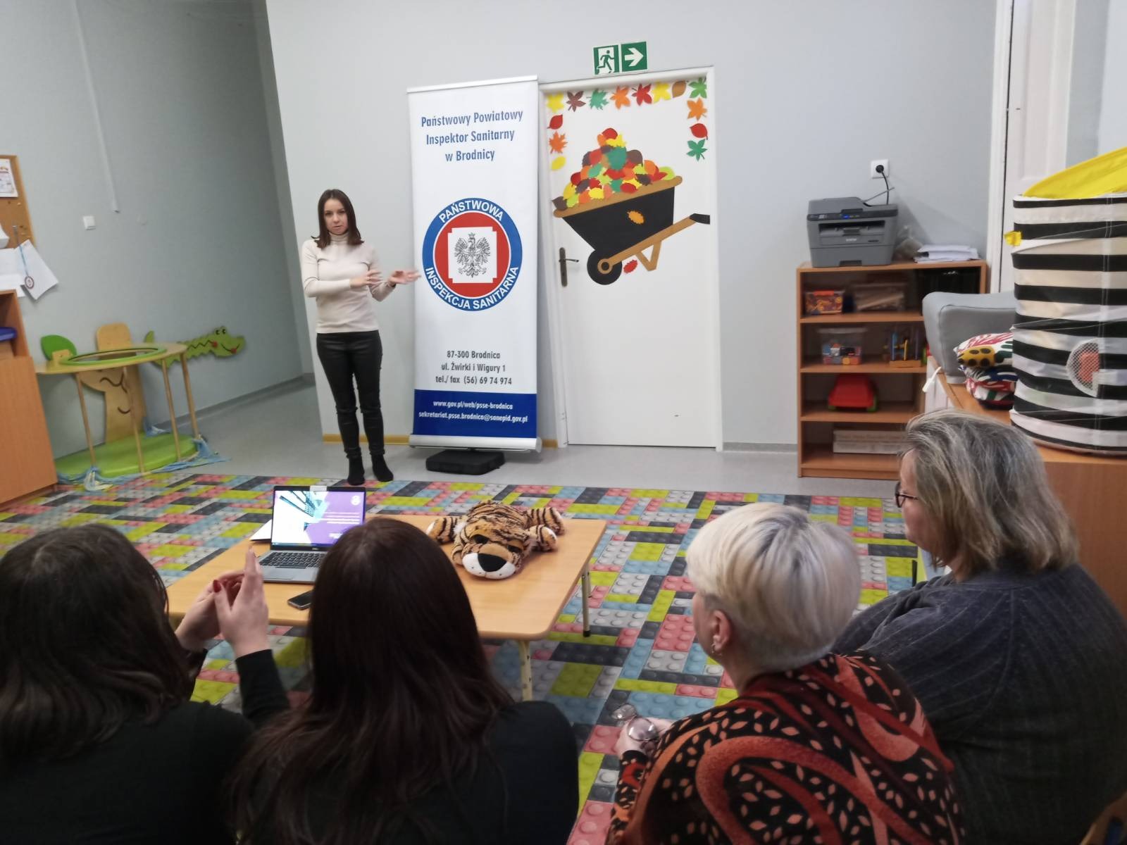 14 listopada 2022 r. przedstawiciele Państwowego Powiatowego Inspektora Sanitarnego w Brodnicy z pionów Higieny Żywności i Żywienia oraz Profilaktyki Zdrowotnej przeprowadzili spotkanie edukacyjne w ramach Kampanii EFSA „Wybieraj bezpieczną żywność” z rodzicami dzieci uczęszczających do Żłobka Happy Kids ul. Kamionka 19 w Brodnicy oraz pracownikami żłobka.