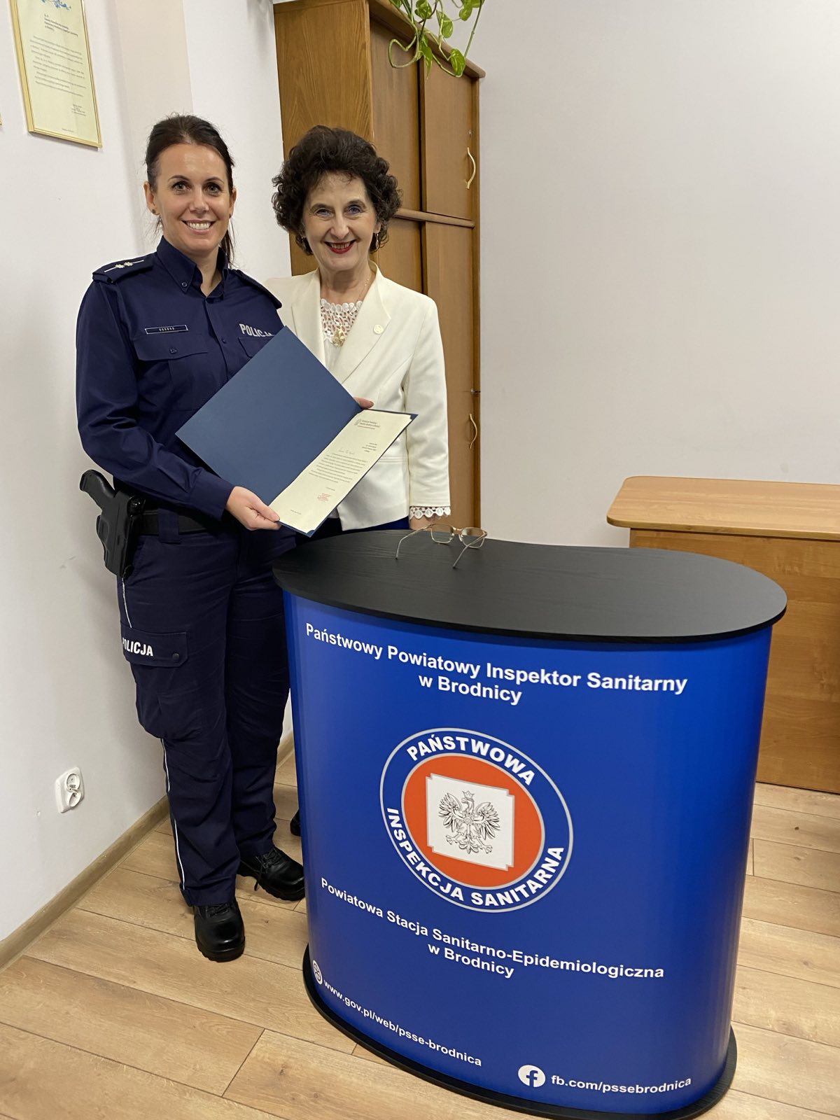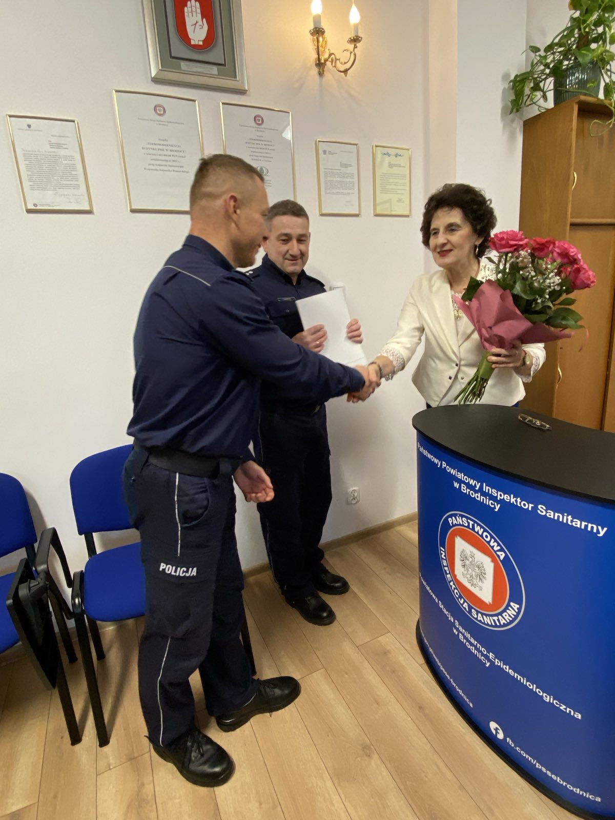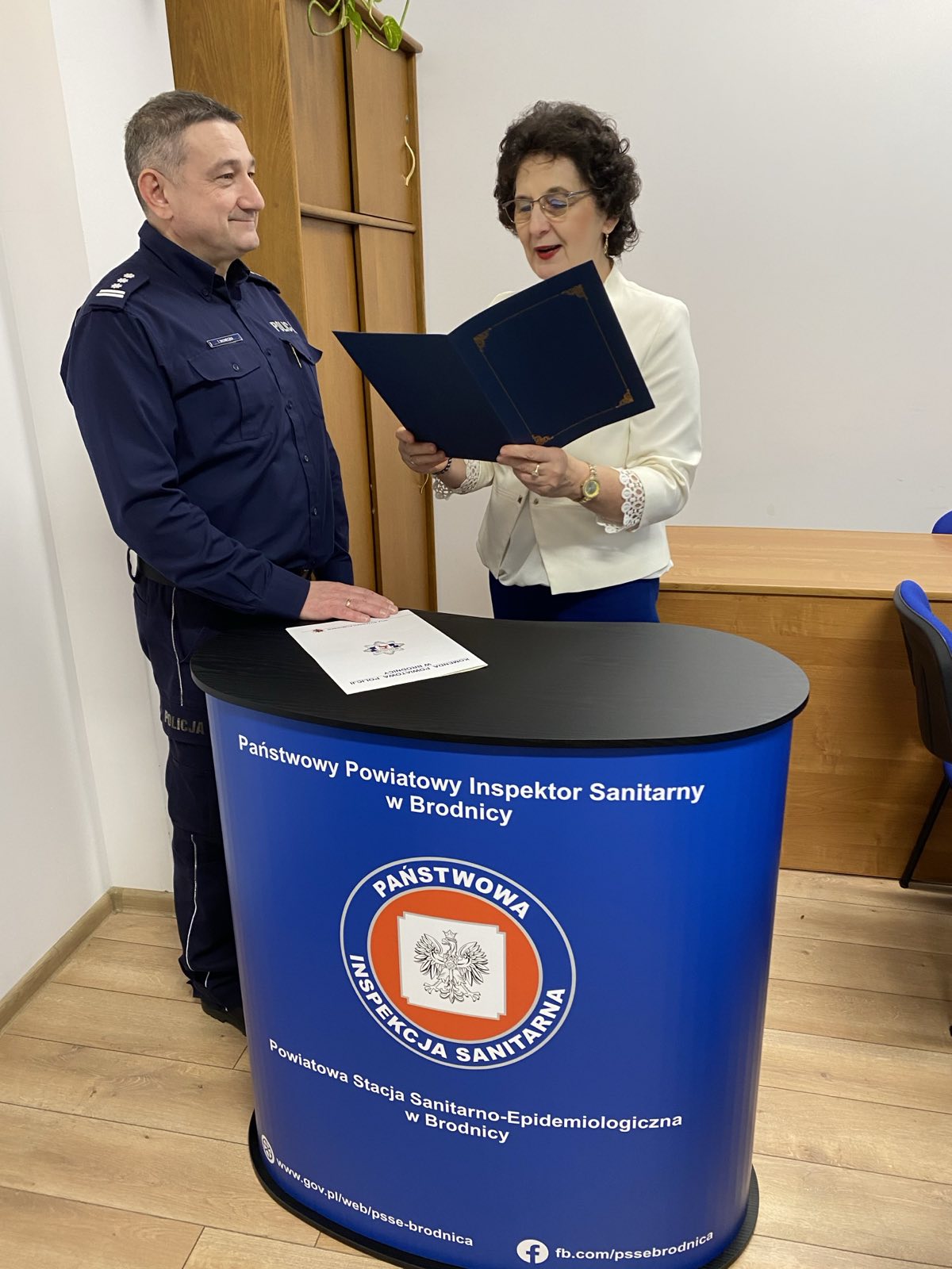 PPIS w Brodnicy podziękował Komendantowi KPP w Brodnicy oraz Jego Przedstawicielom za wieloletnią, wzorową współpracę, zaangażowanie i wsparcie w działaniach na rzecz zdrowia publicznego, wręczając Im okolicznościowe dyplomy, a z kolei Komendant KPP w Brodnicy również złożył podziękowania PPIS w Brodnicy i Pracownikom Państwowej Inspekcji Sanitarnej za dotychczasową, owocną współpracę i profesjonalną służbę na rzecz ochrony zdrowia publicznego.