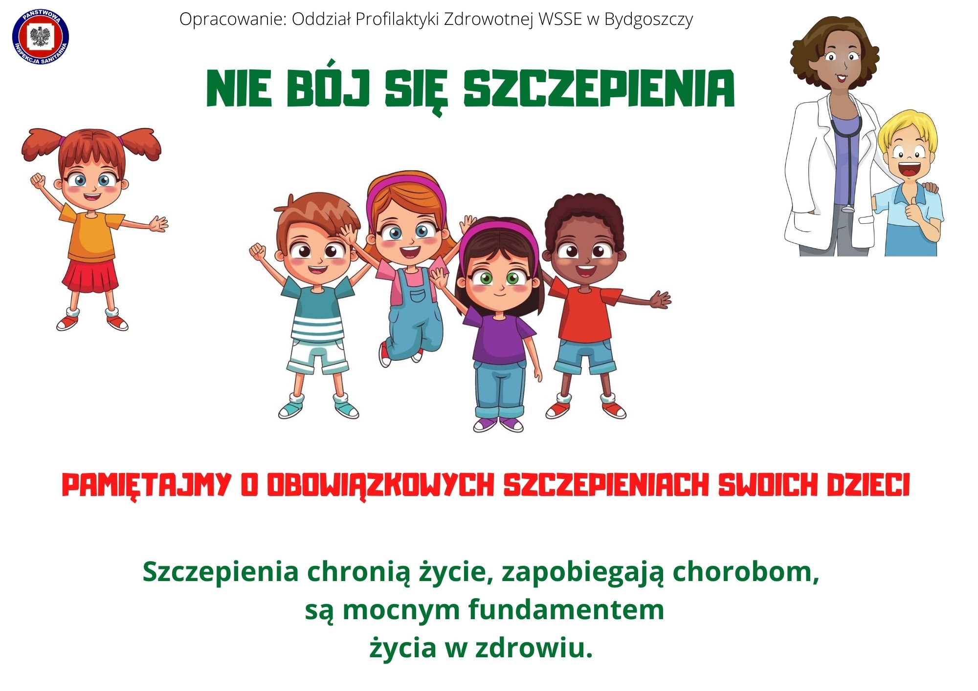 Obowiązkowe szczepienia ochronne dzieci i młodzieży od 1 do 19 roku życia prowadzone są w Polsce od ponad 50 lat, zgodnie z Programem Szczepień Ochronnych przygotowywanym okresowo przez ekspertów. Więcej na ten temat: https://szczepienia.pzh.gov.pl/