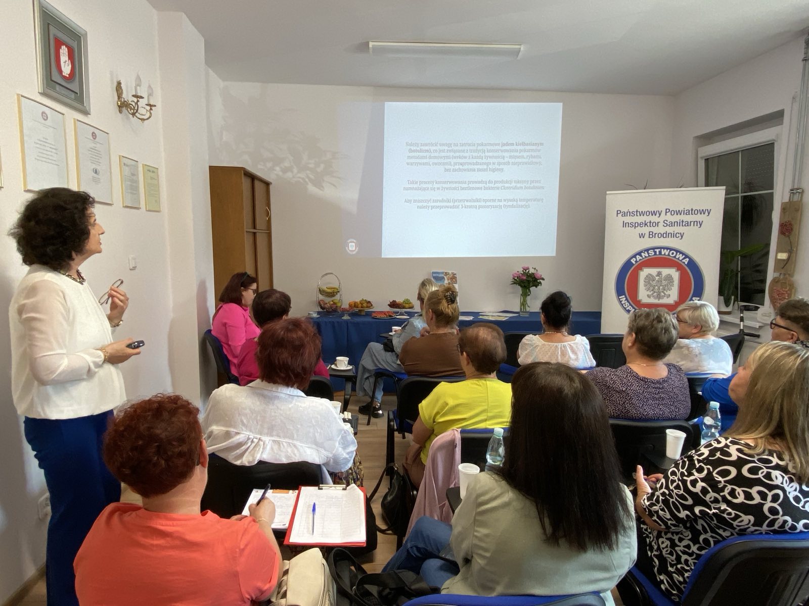 W dniu 12 czerwca 2025 r. odbyło się szkolenie członków Kół Gospodyń Wiejskich z terenu powiatu brodnickiego na temat bezpieczeństwa zdrowotnego żywności produkowanej przez Koła Gospodyń Wiejskich, profilaktyki chorób przenoszonych przez żywność oraz zasad zdrowego żywienia, prowadzone przez Państwowego Powiatowego Inspektora Sanitarnego w Brodnicy oraz przedstawicieli pionów: Nadzoru nad Bezpieczeństwem Żywności i Żywienia oraz Profilaktyki Zdrowotnej.