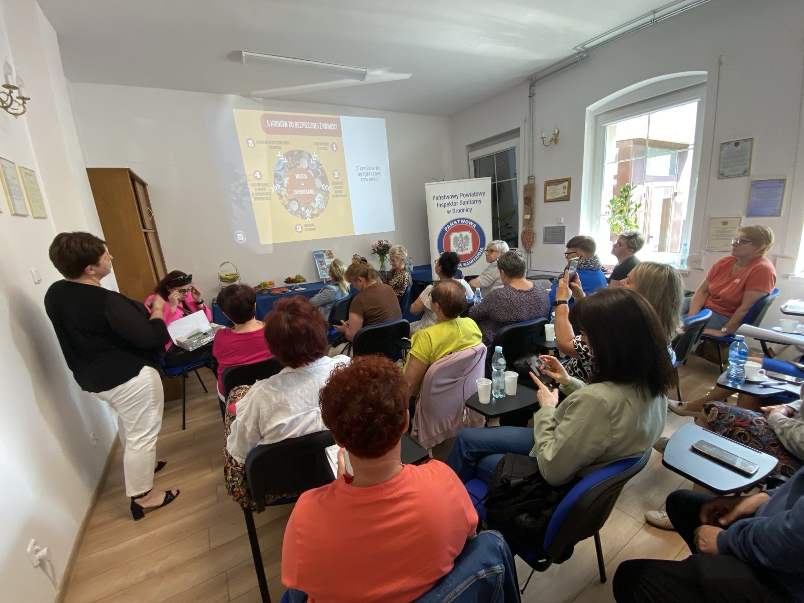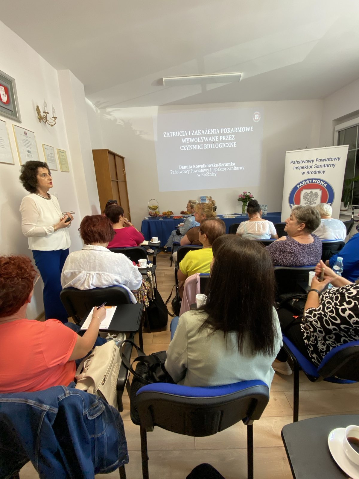 Szkolenie członków Kół Gospodyń Wiejskich z terenu powiatu brodnickiego na temat bezpieczeństwa zdrowotnego żywności produkowanej przez KGW, profilaktyki chorób przenoszonych przez żywność oraz zasad zdrowego żywienia