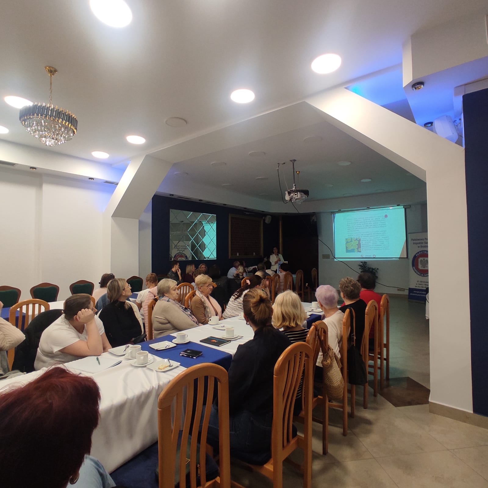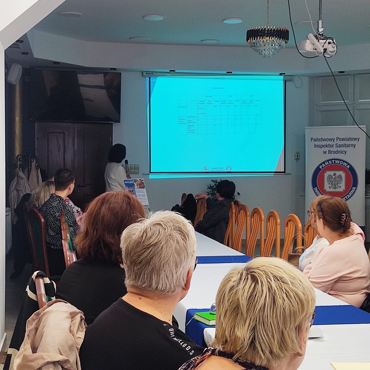 Państwowy Powiatowy Inspektor Sanitarny w Brodnicy powitał uczestników szkolenia: Pana Bogusława Błaszkiewicza – Prezesa Zarządu Stowarzyszenia „Lokalna Grupa Działania Pojezierze Brodnickie” oraz Panią Małgorzatę Smoczyńską – Sołtysa Sołectwa Janówko Gminy Brzozie i jednocześnie Przewodniczącą Gminnej Rady KGW w Janówku oraz pozostałych przewodniczących i przedstawicieli Kół Gospodyń Wiejskich z terenu powiatu brodnickiego.