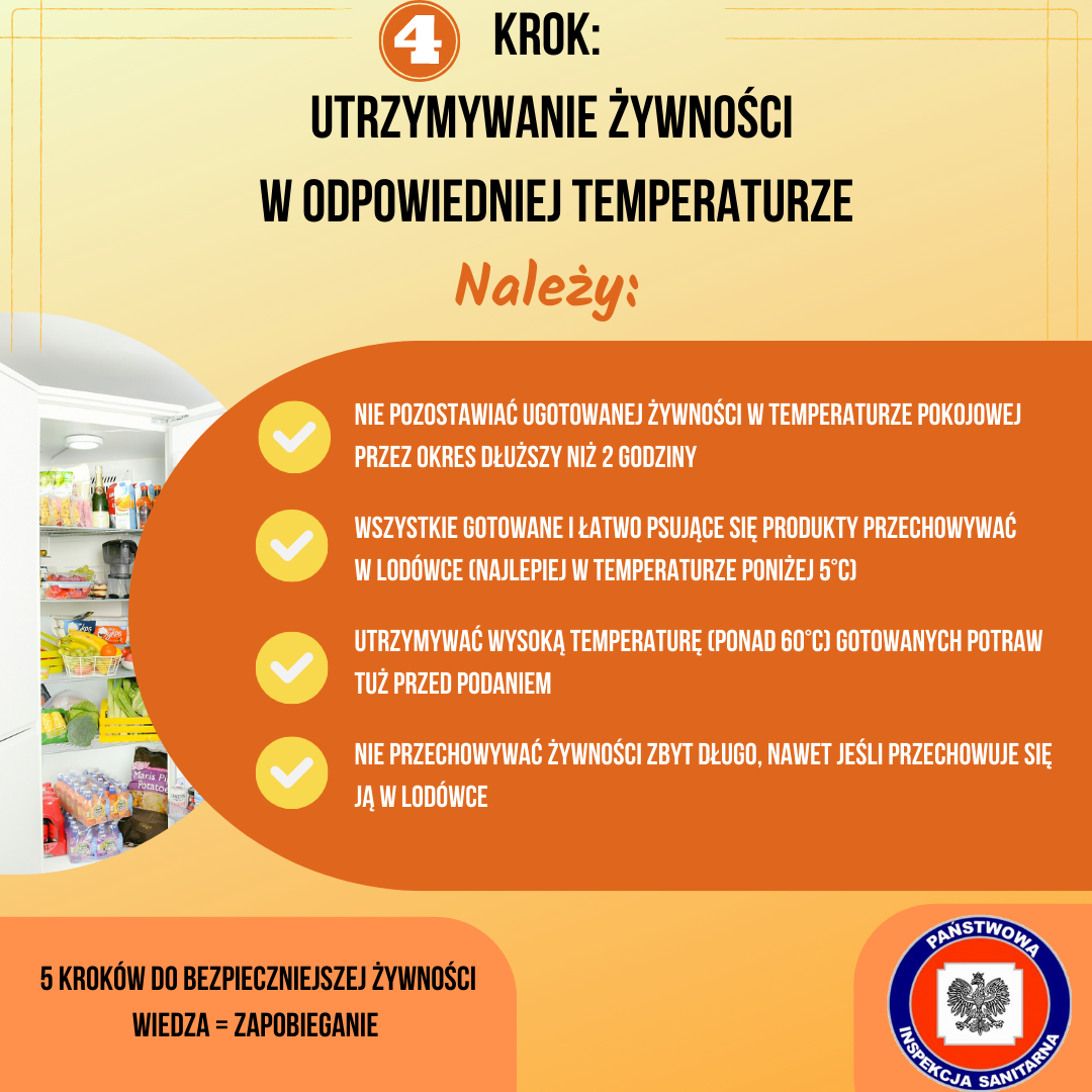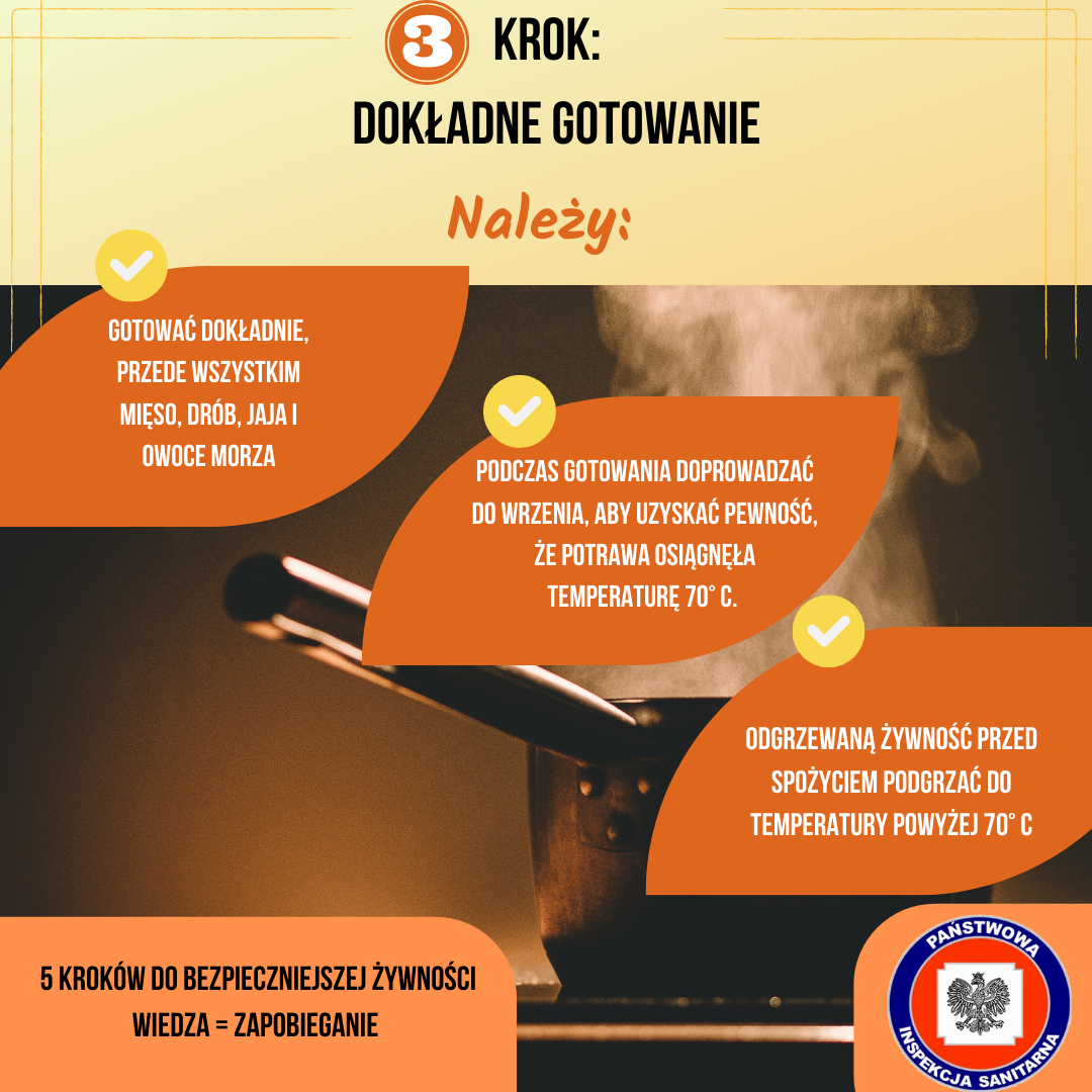 - przestrzeganie właściwej technologii produkcji – poddawanie żywności działaniu wysokiej temperatury (gotowanie, pieczenie, duszenie), która skutecznie niszczy drobnoustroje,