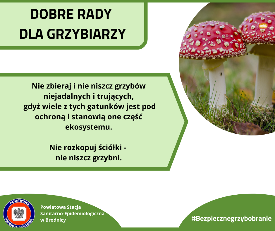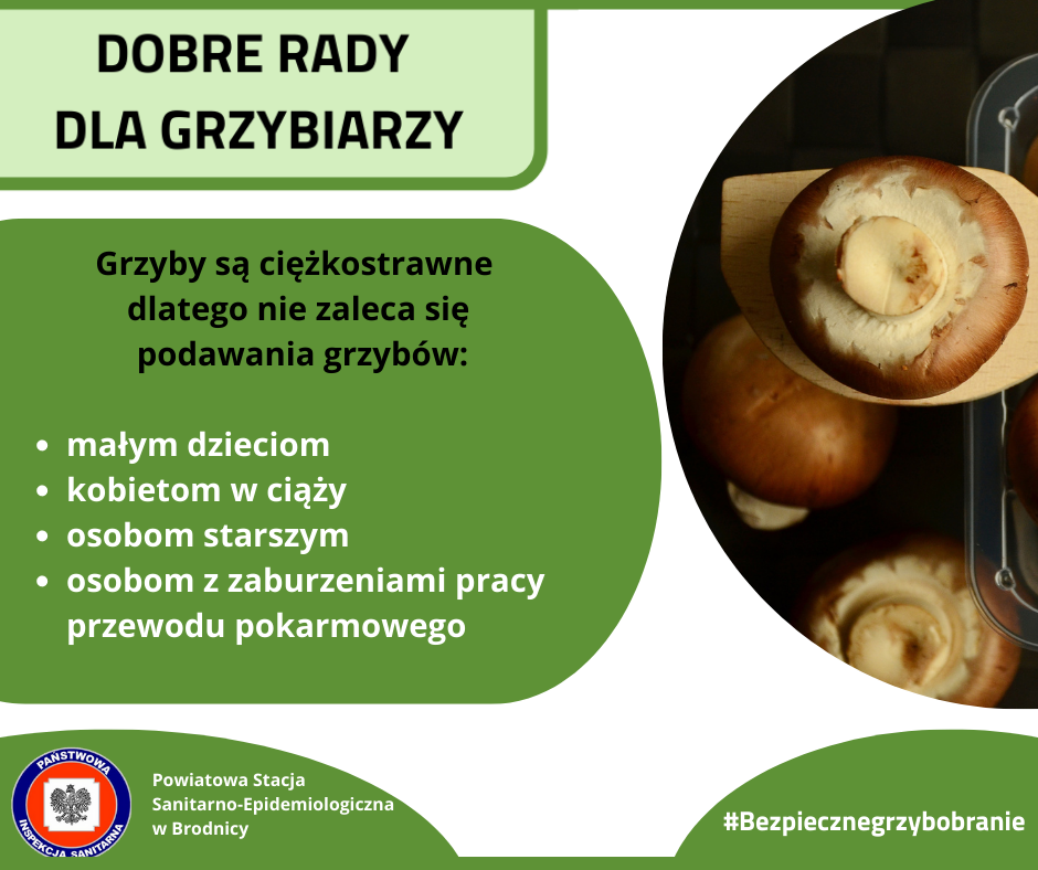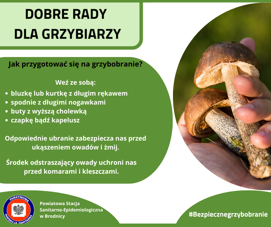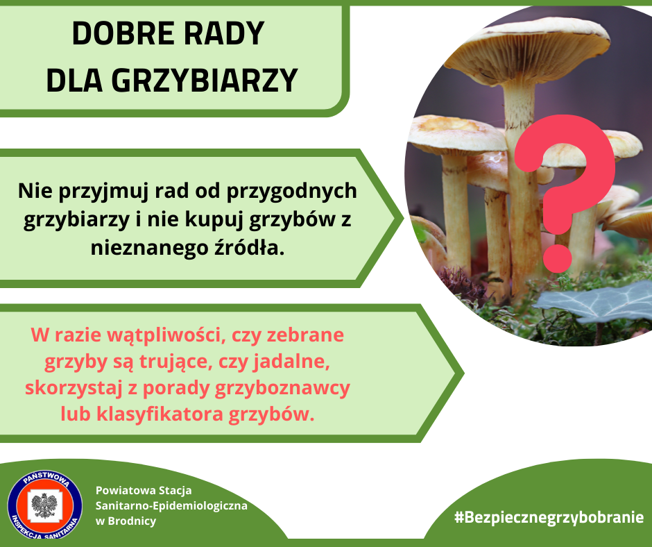 W Powiatowej Stacji Sanitarno-Epidemiologicznej w Brodnicy jest możliwość skorzystania z porad i konsultacji grzyboznawcy od poniedziałku do piątku w godzinach od 7:30 do 8:30.
