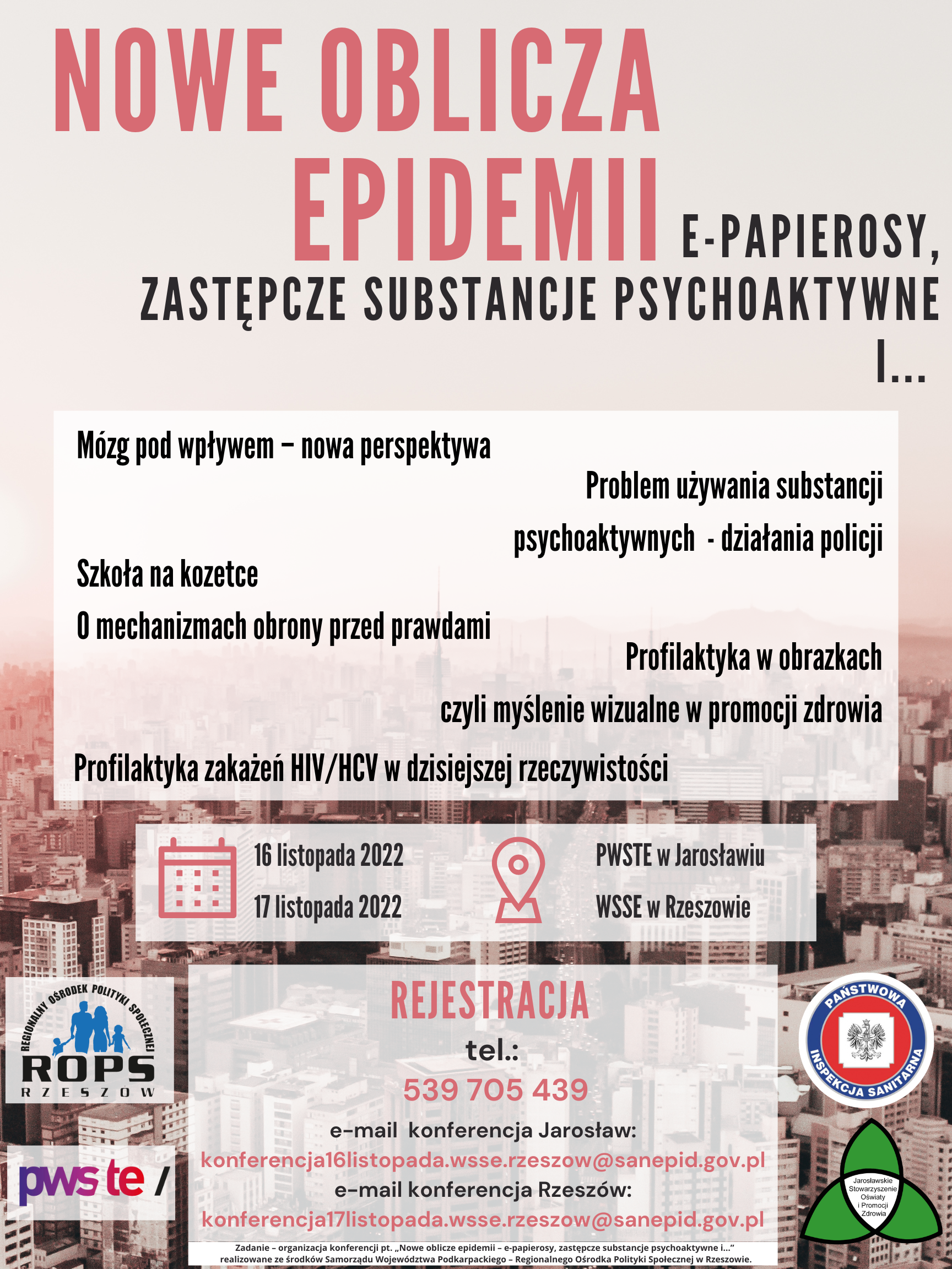 - w Jarosławiu – zgłoszenia na adres konferencja16listopada.wsse.rzeszow@sanepid.gov.pl