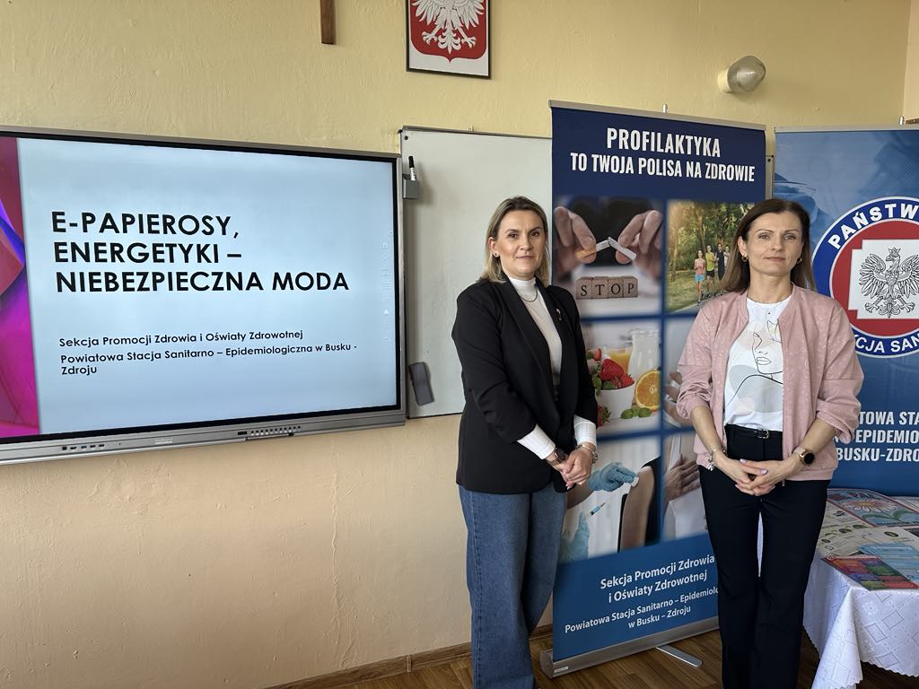 8 kwietnia 2025r. z okazji Światowego Dnia Zdrowia przedstawiciele PSSE Busko – Zdrój uczestniczyli w Forum Zdrowia zorganizowanym w Buskim Samorządowym Centrum Kultury. Pracownicy Sekcji PZiOZ przeprowadzili dla uczniów Szkoły Podstawowej w Pacanowie oraz Zespołu Szkolno – Przedszkolnego w Wiślicy zajęcia warsztatowo – wykładowe pt. „E-papierosy, energetyki – niebezpieczna moda”. Uczestnicy wydarzenia mogli odwiedzić także stoisko profilaktyczno – informacyjne przygotowane przez PSSE Busko – Zdrój i WSSE Kielce.