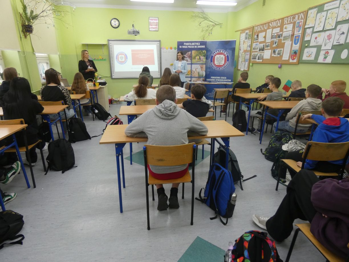 9 i 11 kwietnia 2025r. pracownicy Sekcji PZiOZ PSSE Busko – Zdrój w Szkole Podstawowej w Raczycach oraz w Szkole Podstawowej w Gnojnie przeprowadzili dla uczniów klas starszych zajęcia wykładowe z zakresu profilaktyki antytytoniowej oraz na temat zasad zdrowego stylu życia, ze szczególnym uwzględnieniem napojów energetyzujących. Ponadto w szkołach zorganizowano stoiska profilaktyczno – informacyjne, na których promowano rolę i zadania Inspekcji Sanitarnej, wykonywano badania i udzielano porad.