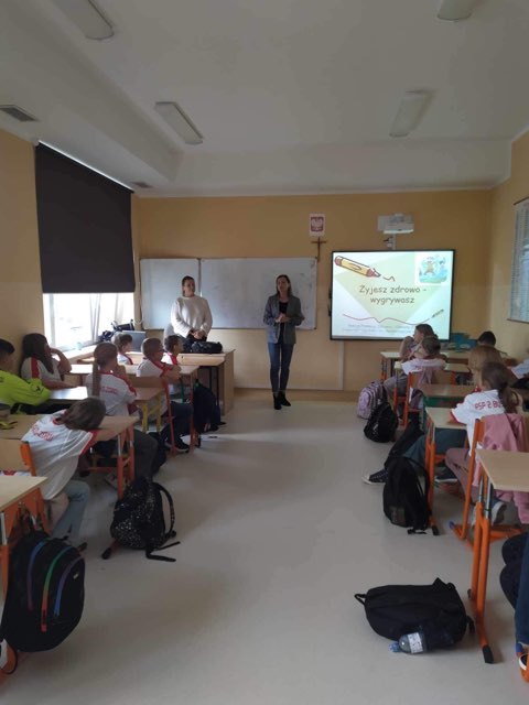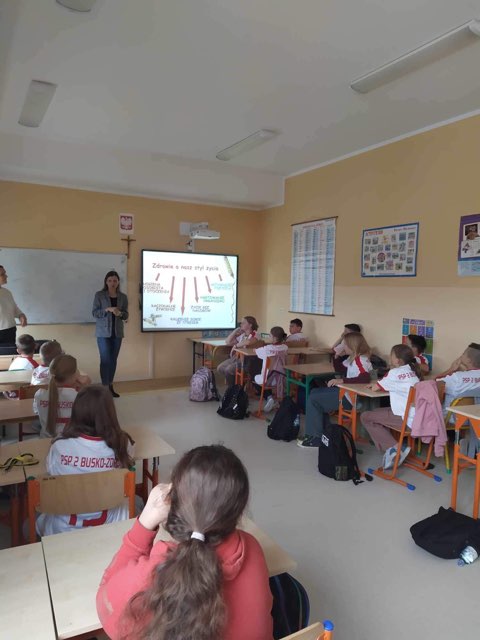 Publiczna Szkoła Podstawowa Nr 2 im. Janusza Korczaka w Busku-Zdroju realizuje Projekt „SPORTOWCY PRZYSZŁOŚCI”. To nie tylko okazja do rozwijania umiejętności w różnych dyscyplinach sportowych, ale również dbanie o zdrowy tryb życia. Takie działania wpływają pozytywnie na rozwój uczniów, kształtując ich pasje i umiejętności. W dniu 20 listopada 2023r. Pracownicy Sekcji Promocji Zdrowia i Oświaty Zdrowotnej Powiatowej Stacji Sanitarno – Epidemiologicznej w Busku – Zdroju na zaproszenie wychowawcy i dyrekcji szkoły włączyli się w tą wspaniałą inicjatywę. W klasie IVa przeprowadzono spotkanie edukacyjne pod hasłem „Żyjesz Zdrowo - Wygrywasz!”. Uczniowie zostali zapoznani z zagadnieniami dotyczącymi zdrowego stylu życia oraz bardzo ważnej aktywności fizycznej. Szczegółowo omówiono z Dziećmi Piramidę Zdrowego Żywienia.
