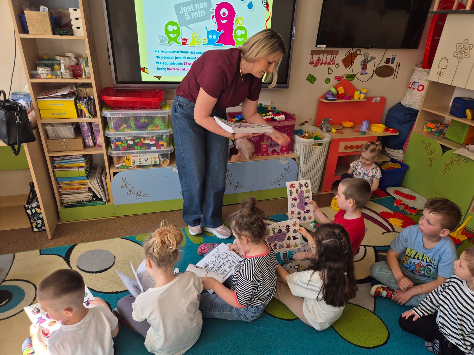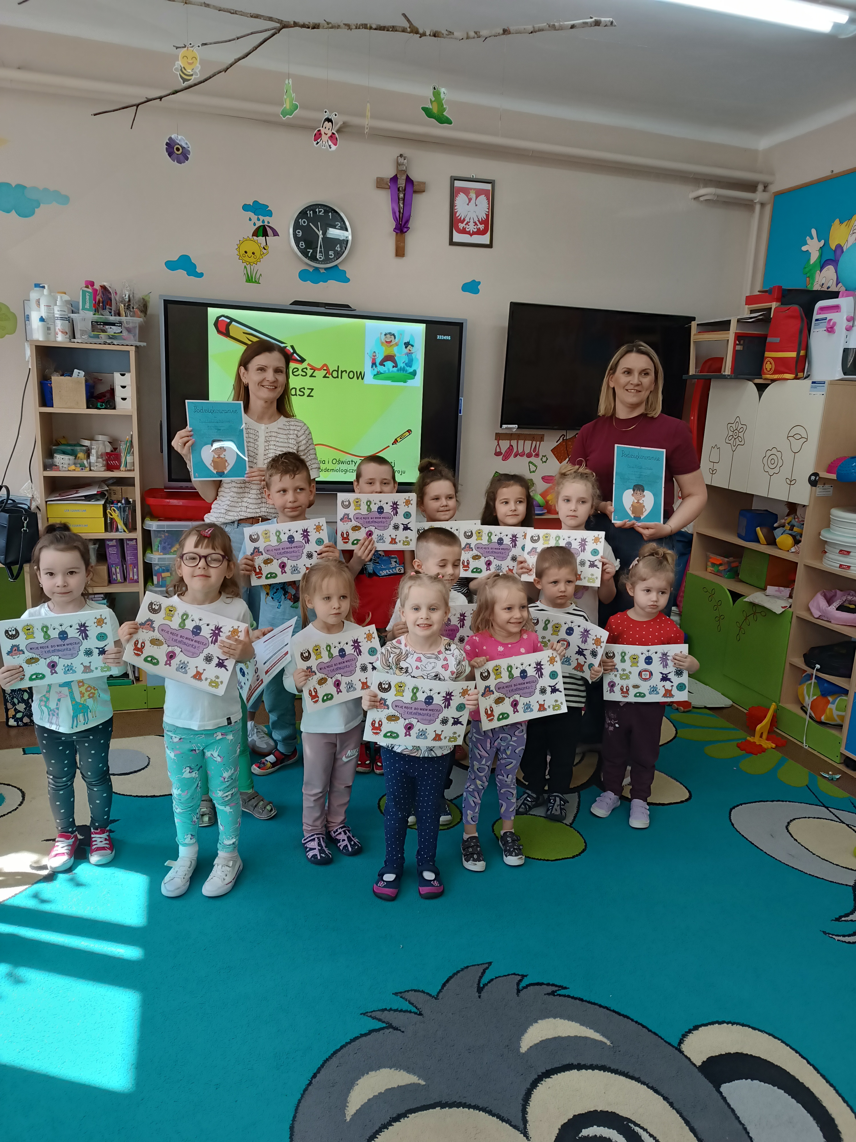Pracownicy Sekcji Promocji Zdrowia i Oświaty Zdrowotnej PSSE Busko – Zdrój dnia 14 kwietnia 2025 roku gościli w Szkole Podstawowej w Balicach i spotkali się z najmłodszymi uczniami placówki – odziałem przedszkolnym i oddziałem „0”. Podczas zajęć rozmawialiśmy z dziećmi na temat zasad zdrowego stylu życia, podkreślając rolę warzyw i owoców w zbilansowanej diecie oraz zachęcaliśmy dzieci do częstej aktywności fizycznej. Przedszkolaki dowiedziały się także, jak duże znaczenie dla naszego zdrowia ma dokładne mycie rąk, które chroni przed wieloma chorobami. Dziękujemy za zaproszenie, miłą atmosferę i zaangażowanie dzieci podczas zajęć.