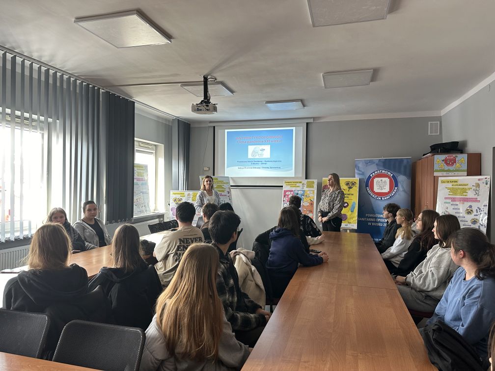 W związku z obchodami Światowego Tygodnia Wiedzy o Antybiotykach (WAAW) oraz Europejskiego Dnia Wiedzy o Antybiotykach (EAAD) Powiatowa Stacja Sanitarno – Epidemiologiczna w Busku – Zdroju gościła uczniów klasy IIIC (Technik hotelarstwa) z Zespołu Szkół Ponadpodstawowych im. M. Kopernika w Busku – Zdroju.