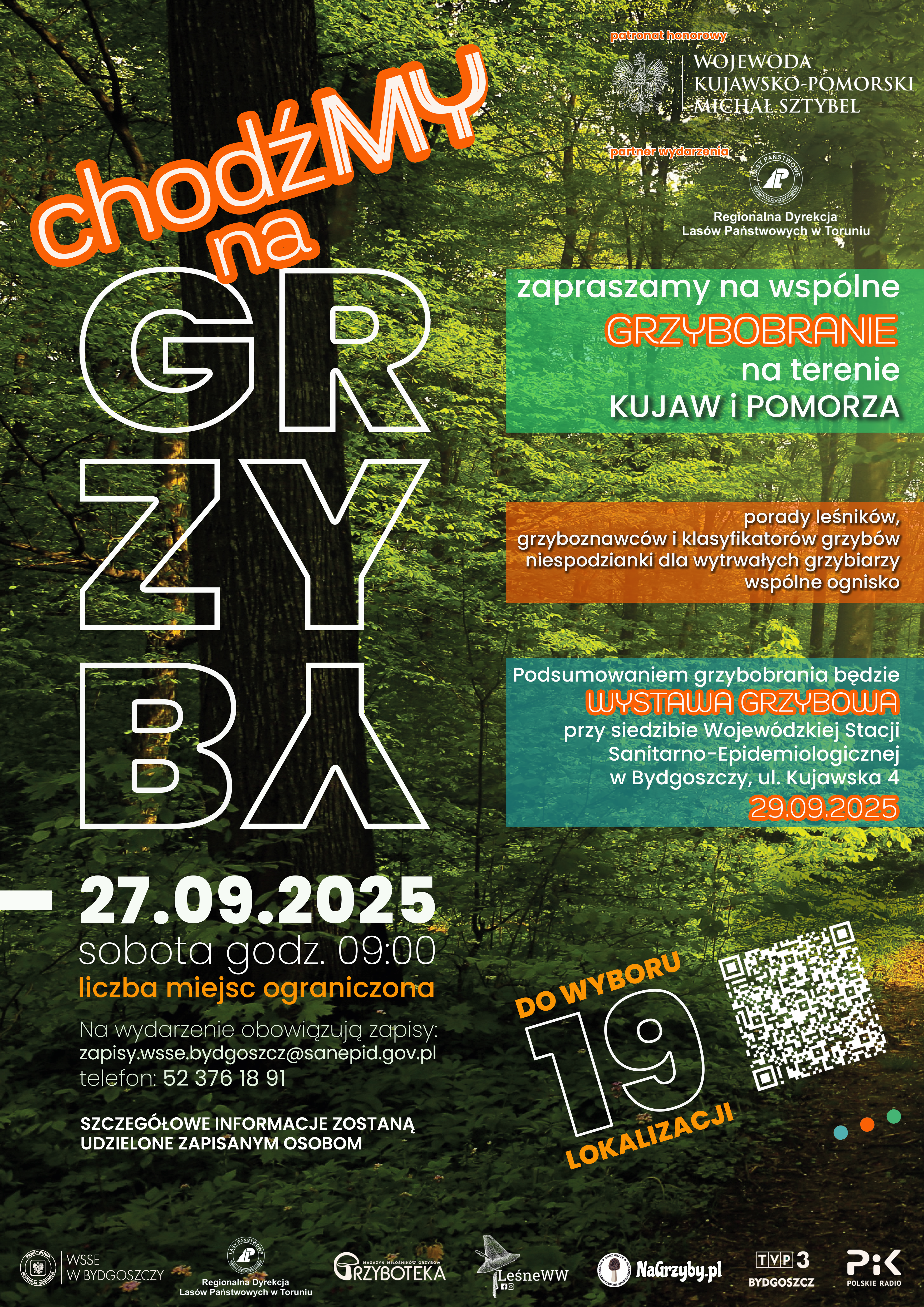 – Już po raz drugi zapraszam Państwa na wspólne grzybobranie. Mieszkańcy regionu będą mogli wziąć w nim udział w dogodnej lokalizacji w każdym z powiatów. Życzę wspaniałych zbiorów i koszy pełnych dorodnych owocników – zaprasza Wojciech Koper, Państwowy Wojewódzki Inspektor Sanitarny w Bydgoszczy.