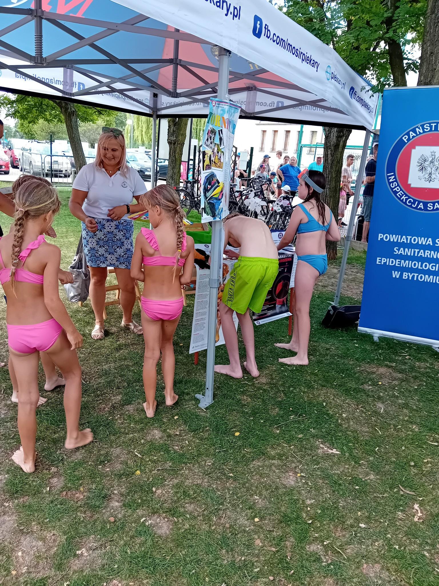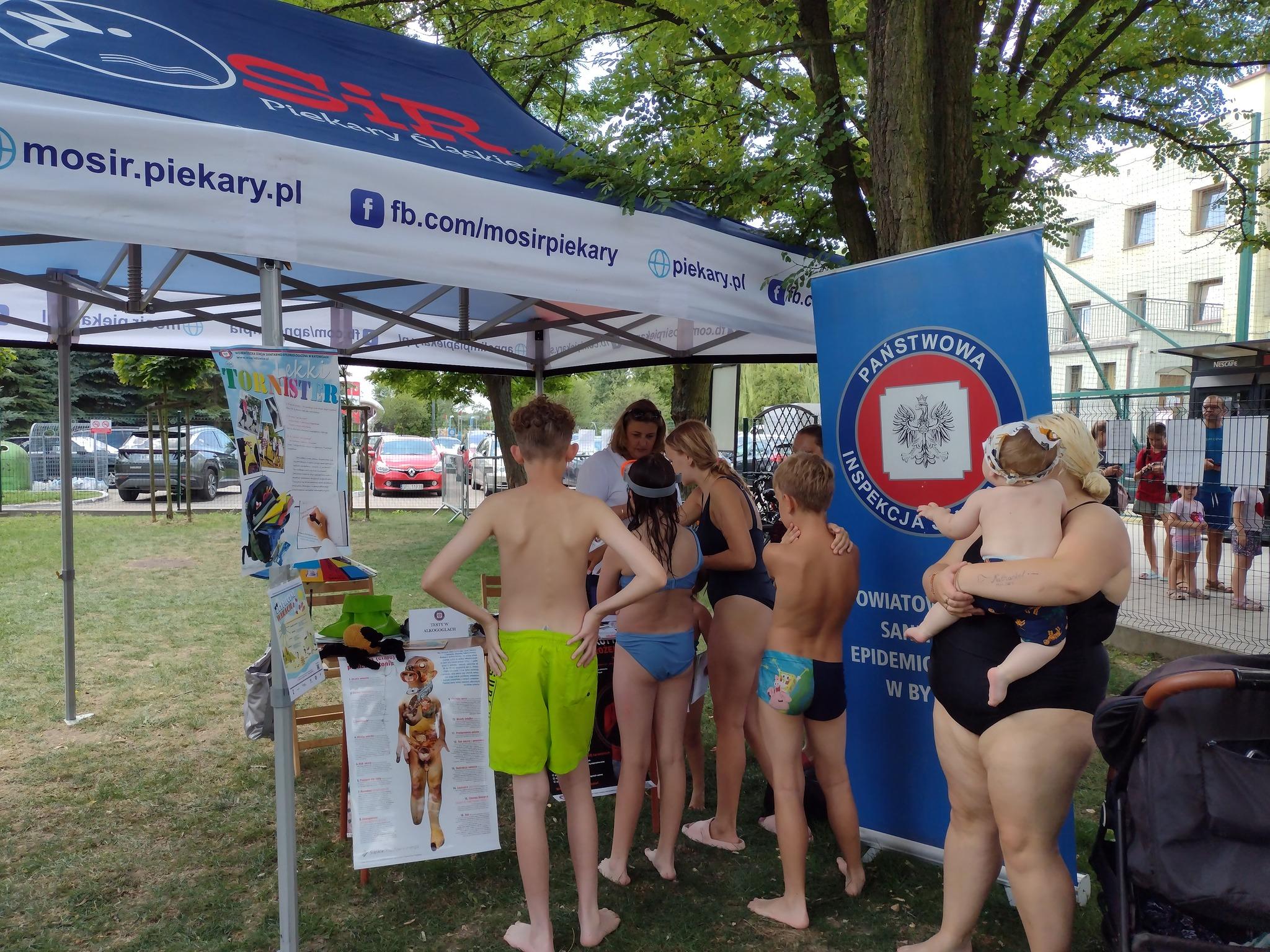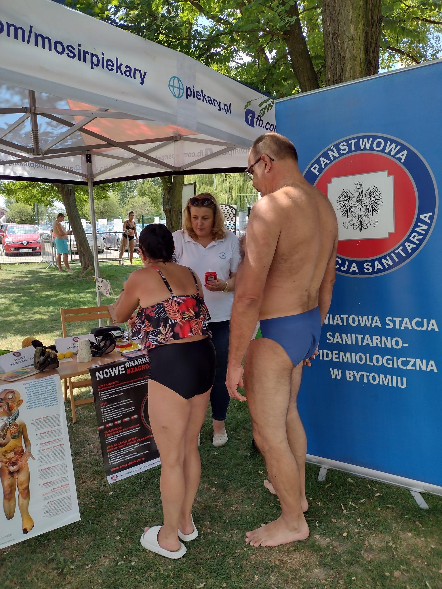 W ramach akcji #Bezpiecznewakacje, w dniu 16.08.2024 r. zorganizowano akcję profilaktyczną na terenie MOSiR w Piekarach Śląskich – Basen i wodny plac zabaw dla dzieci. Na stanowisku PSSE w Bytomiu przygotowano ekspozycję materiałów informacyjno-edukacyjnych nawiązujących do bezpiecznych wakacji. Z ogromnym zainteresowaniem dzieci i dorośli przyglądali się prawdziwym kleszczom w probówkach. Dzieci sprawdzały także swoją wiedzę biorąc udział w przygotowanym quizie wiedzy.🎲 Dla osób dorosłych przygotowano pomiary tlenku węgla w wydychanym powietrzu oraz specjalne zadania z użyciem alko i narkogoli.