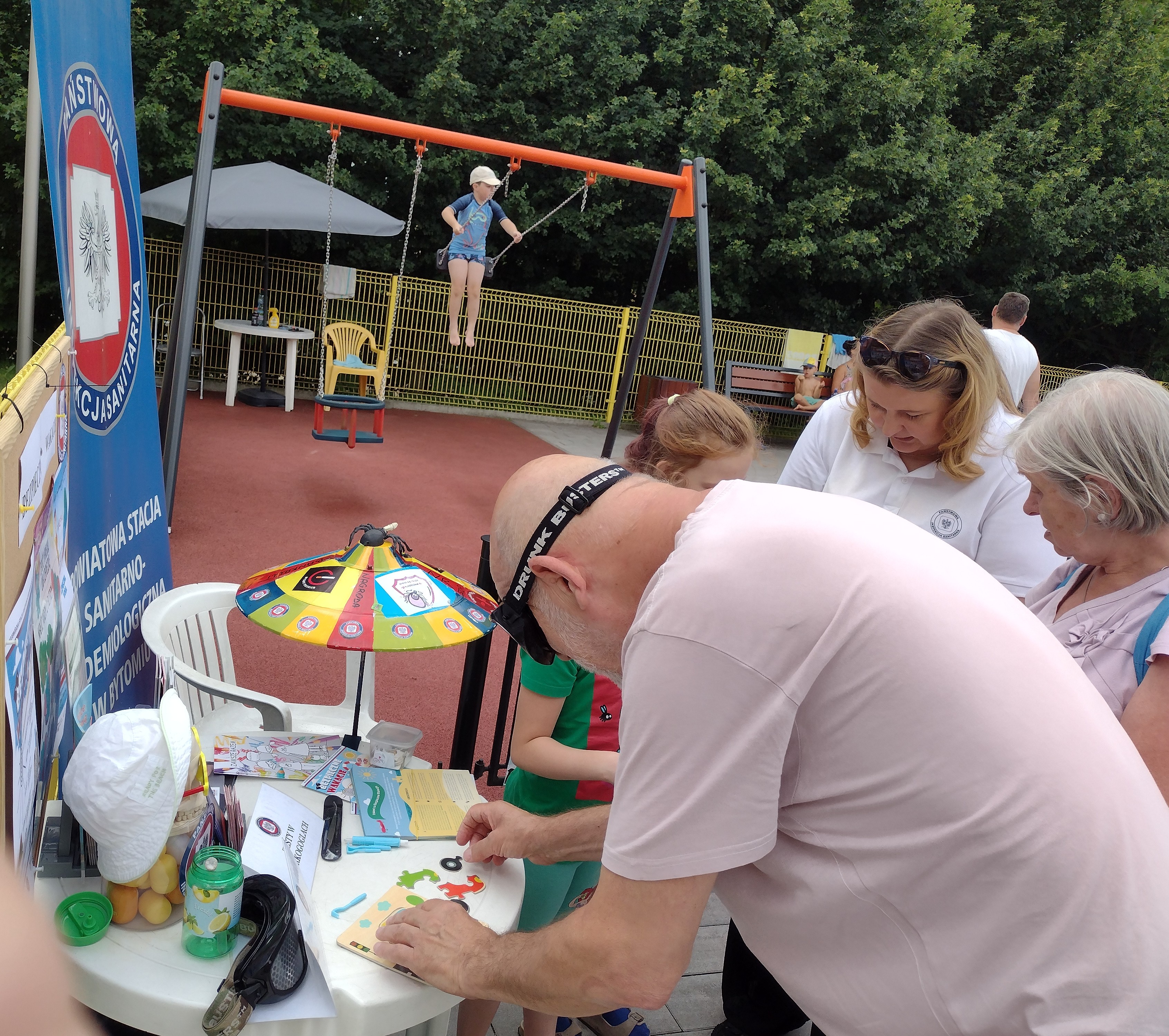 W ramach akcji #Bezpiecznewakacje, w dniu 23 lipca br. pracownicy PSSE Bytom, na terenie OSIR - Plac Wodny w Bytomiu zorganizowali różne atrakcje dla dzieci i dorosłych. Można było zobaczyć m.in. kleszcze w probówkach, przyrządy do usuwania kleszczy, wykonać zadania w alkogoglach i narkogoglach oraz skorzystać z wakacyjnego quizu wiedzy. Natomiast osoby dorosłe zachęcano do rzucenia palenia, wykonując pomiary stężenia tlenku węgla w wydychanym powietrzu.
