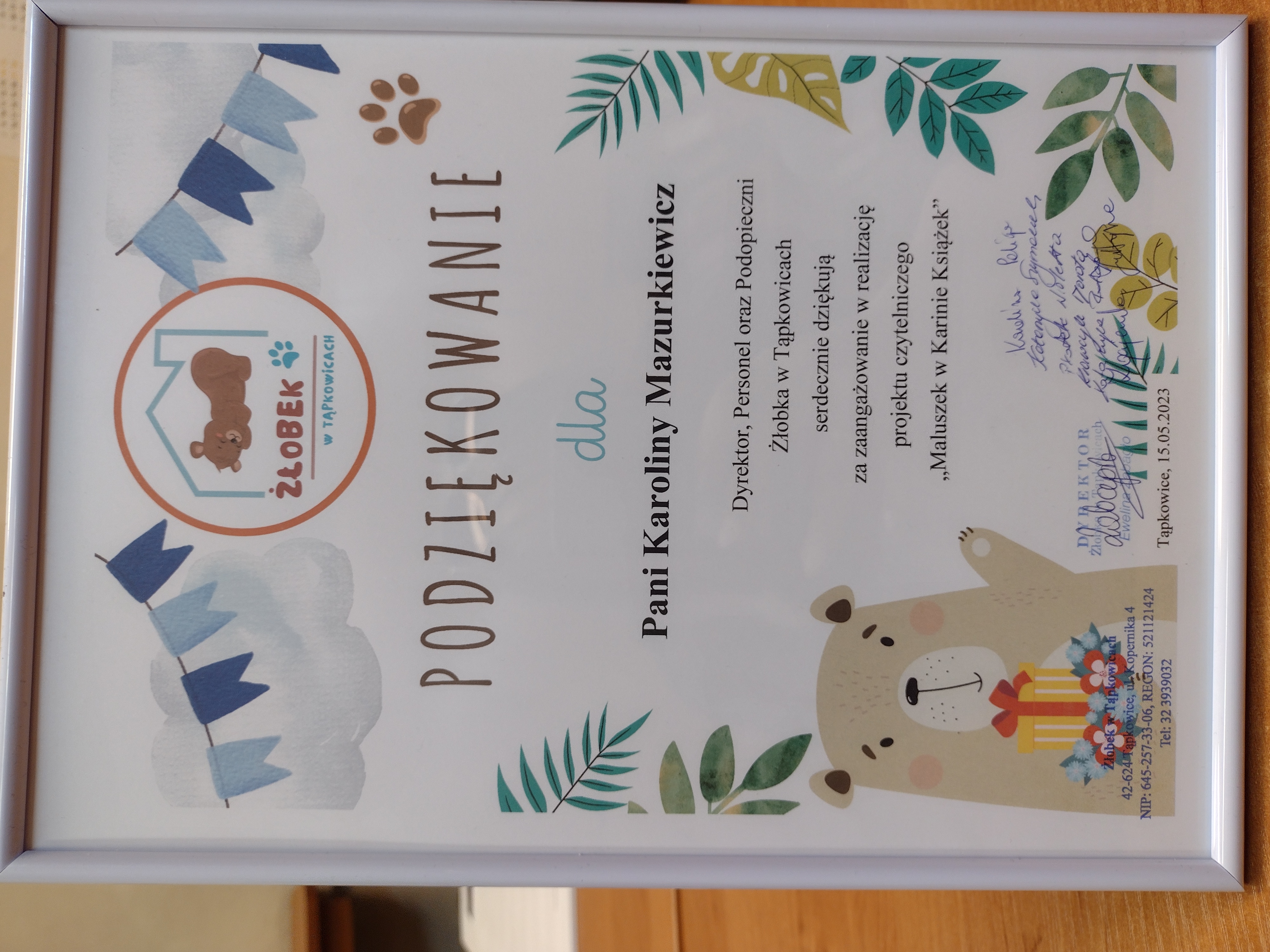 Niedźwiadek Szczepan na co dzień mieszka w przychodni, gdzie pomaga dzieciom przezwyciężyć lęk związany ze szczepieniem. Kiedy dzieci przytulają pluszaka od razu poprawia im się humor, zaś strachy znikają, a szczepienie okazuje się tylko nieszkodliwym ukłuciem. W związku z realizacją projektu „Maluszek w Krainie Książek”, w dniu 15.05.2023r. na zaproszenie dyrekcji, przedstawiciel Powiatowej Stacji Sanitarno-Epidemiologicznej w Bytomiu przeczytał bajkę „Przygody dzielnego niedźwiadka Szczepana” w żłobku w Tąpkowicach. Dzięki bajce o Niedźwiadku Szczepanie najmłodsi mogą zrozumieć, jak działają szczepienia oraz, że wizyta szczepienna, choć związana z ukłuciem, nie jest ani straszna ani nie wiąże się z dużym bólem. Na zakończenie każde dziecko otrzymało zakładkę informacyjną „Zaszczep w sobie chęć szczepienia”.