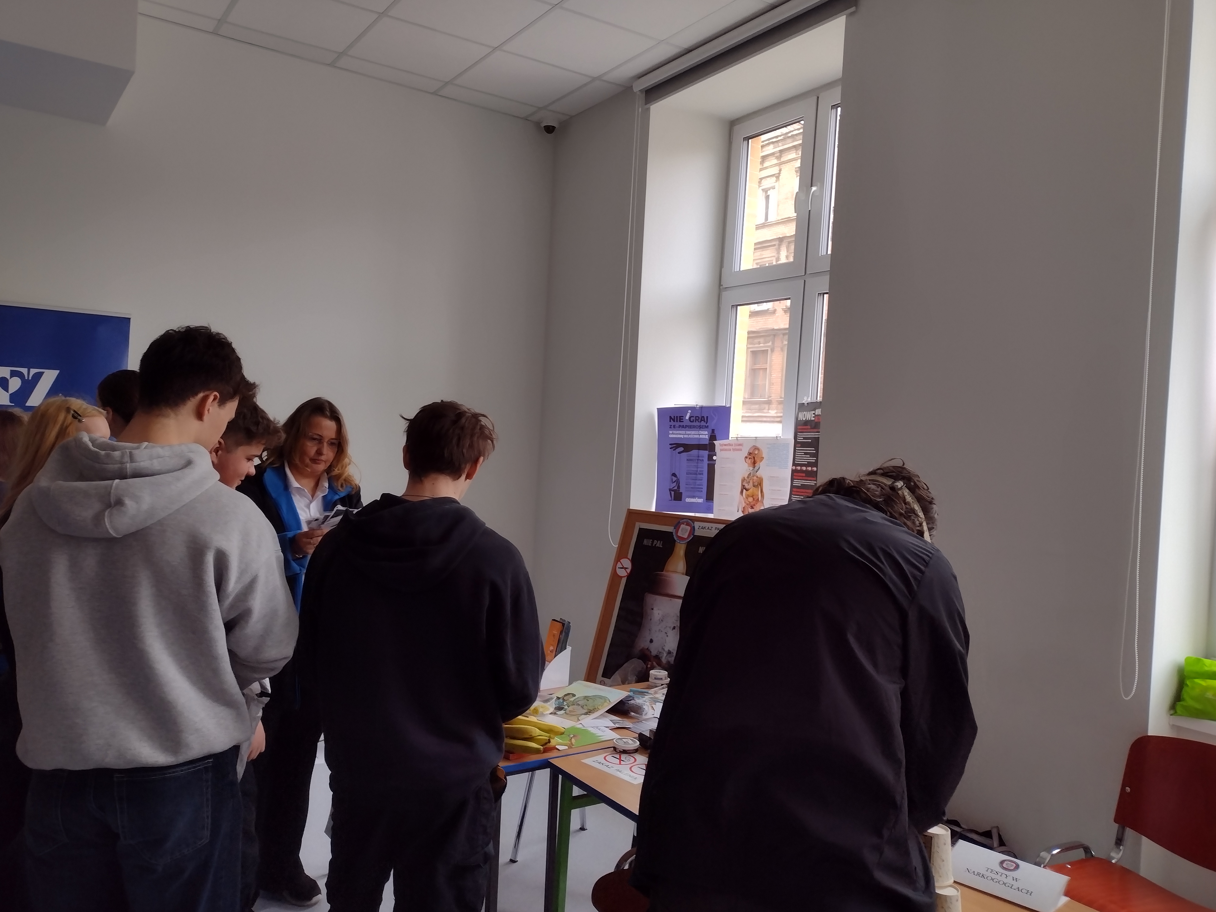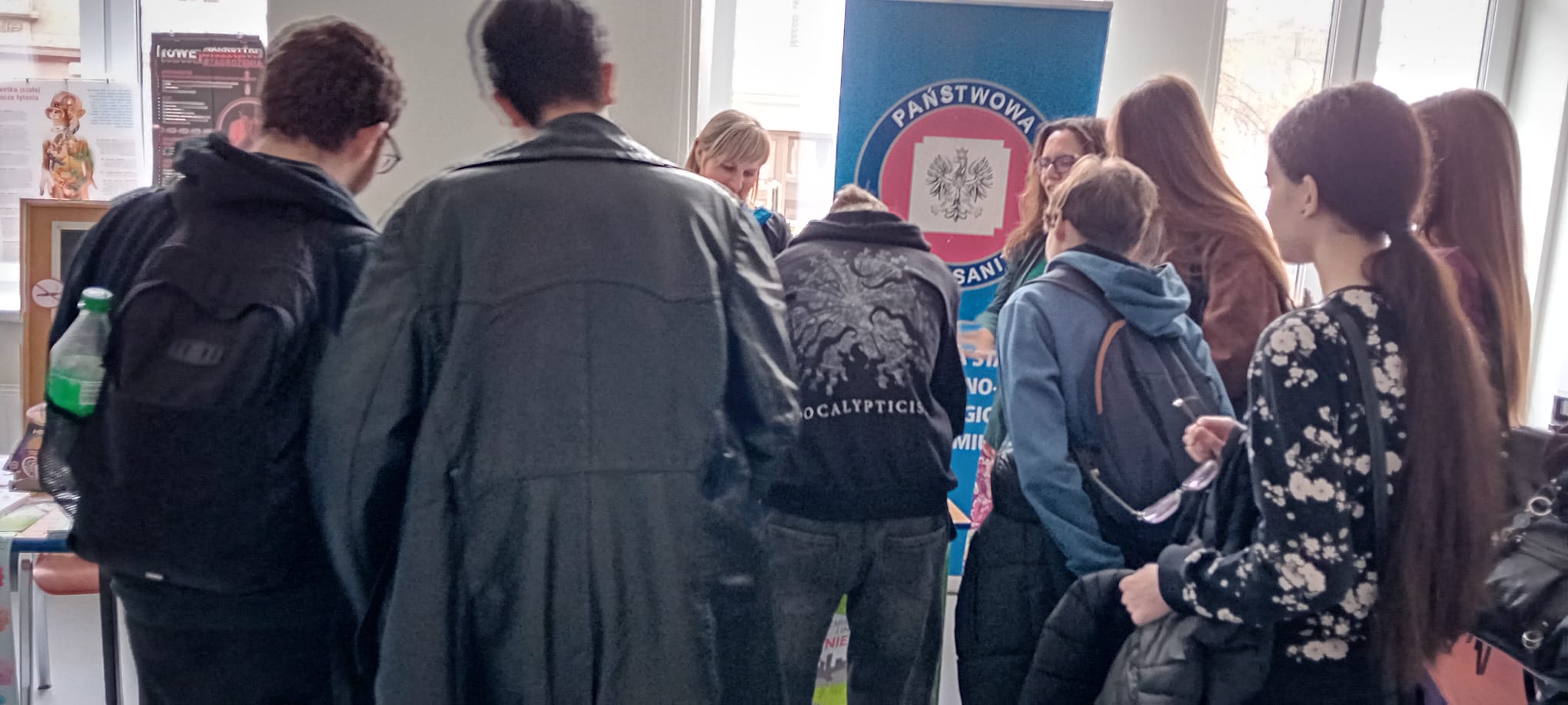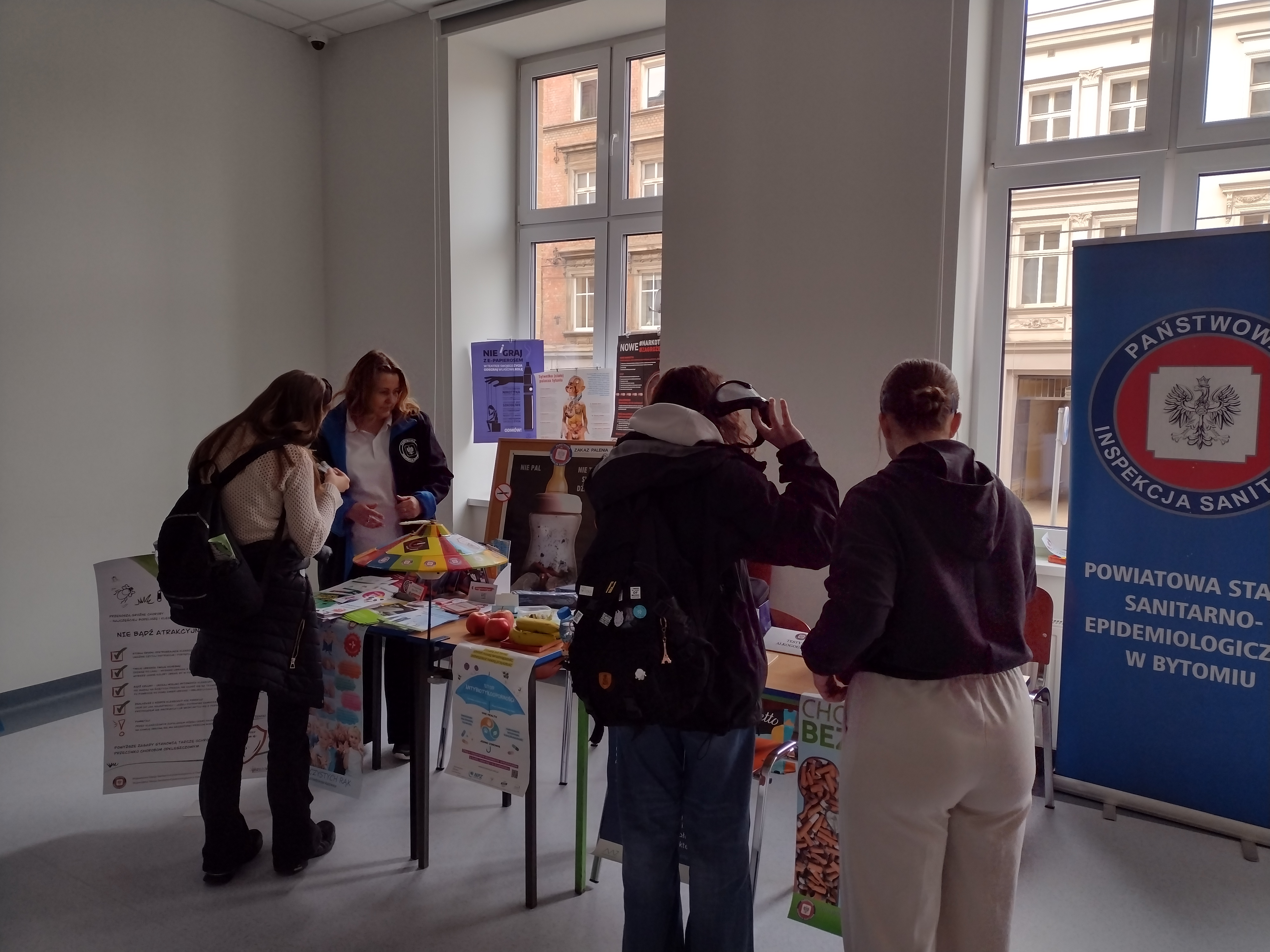 20 marca br. podczas dni otwartych Śląskiego Uniwersytetu Medycznego – Wydział Zdrowia Publicznego w Bytomiu, stanowisko edukacyjno-informacyjne przygotowane przez pracowników PSSE w Bytomiu przyciągnęło wielu zainteresowanych. Odwiedzający mogli aktywnie uczestniczyć w przygotowanych atrakcjach, m.in. sprawdzić swoje reakcje w specjalnych okularach symulujących stan po spożyciu alkoholu i substancji psychoaktywnych. Sporą ciekawość wzbudziła także ekspozycja kleszczy umieszczonych w probówkach, dzięki której uczestnicy mogli z bliska przyjrzeć się ich wyglądowi oraz dowiedzieć się więcej o zagrożeniach, jakie niosą dla zdrowia. Nie zabrakło również elementów edukacyjnej zabawy – „koło wiedzy” umożliwiało sprawdzenie i poszerzenie wiedzy z zakresu higieny oraz profilaktyki zdrowotnej.
