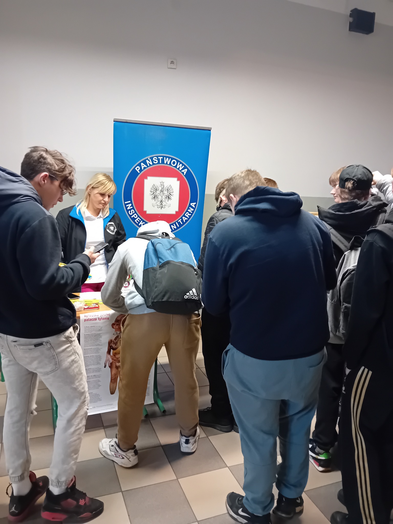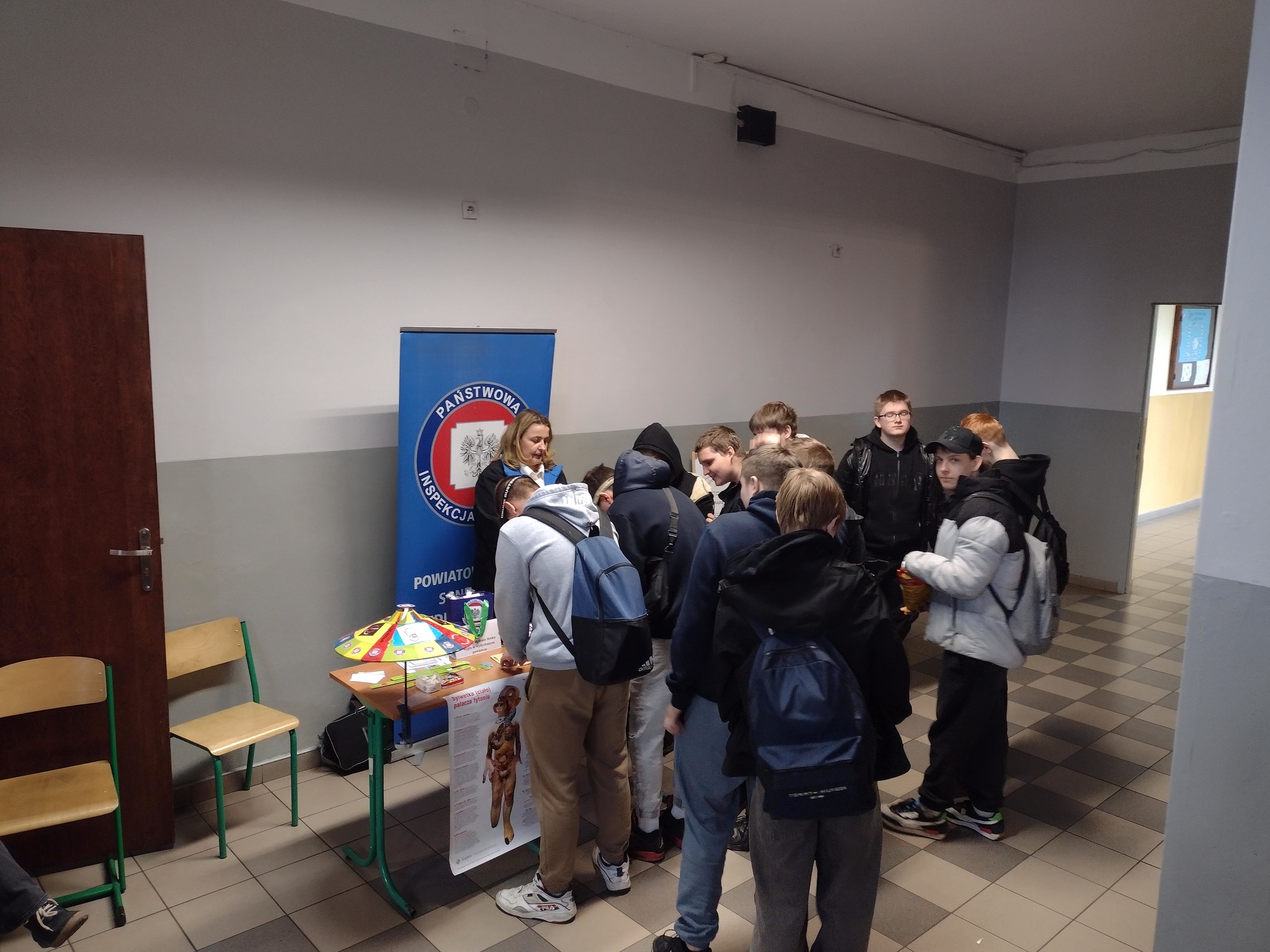 W dniu 11.04.2025 r. w ramach tygodnia profilaktyki szkoły w Zespole Szkół Mechaniczno-Elektronicznych w Bytomiu pracownicy PSSE Bytom zorganizowali punkt informacyjno-edukacyjny. Dla zainteresowanych osób przygotowano koło wiedzy z pytaniami z zakresu uzależnień, zadania w alkogoglach i narkogoglach, które w praktyczny sposób ukazują, jak substancje psychoaktywne wpływają na percepcję i koordynację ruchową. Natomiast osoby palące papierosy miały możliwość sprawdzenia poziomu tlenku węgla w wydychanym powietrzu.