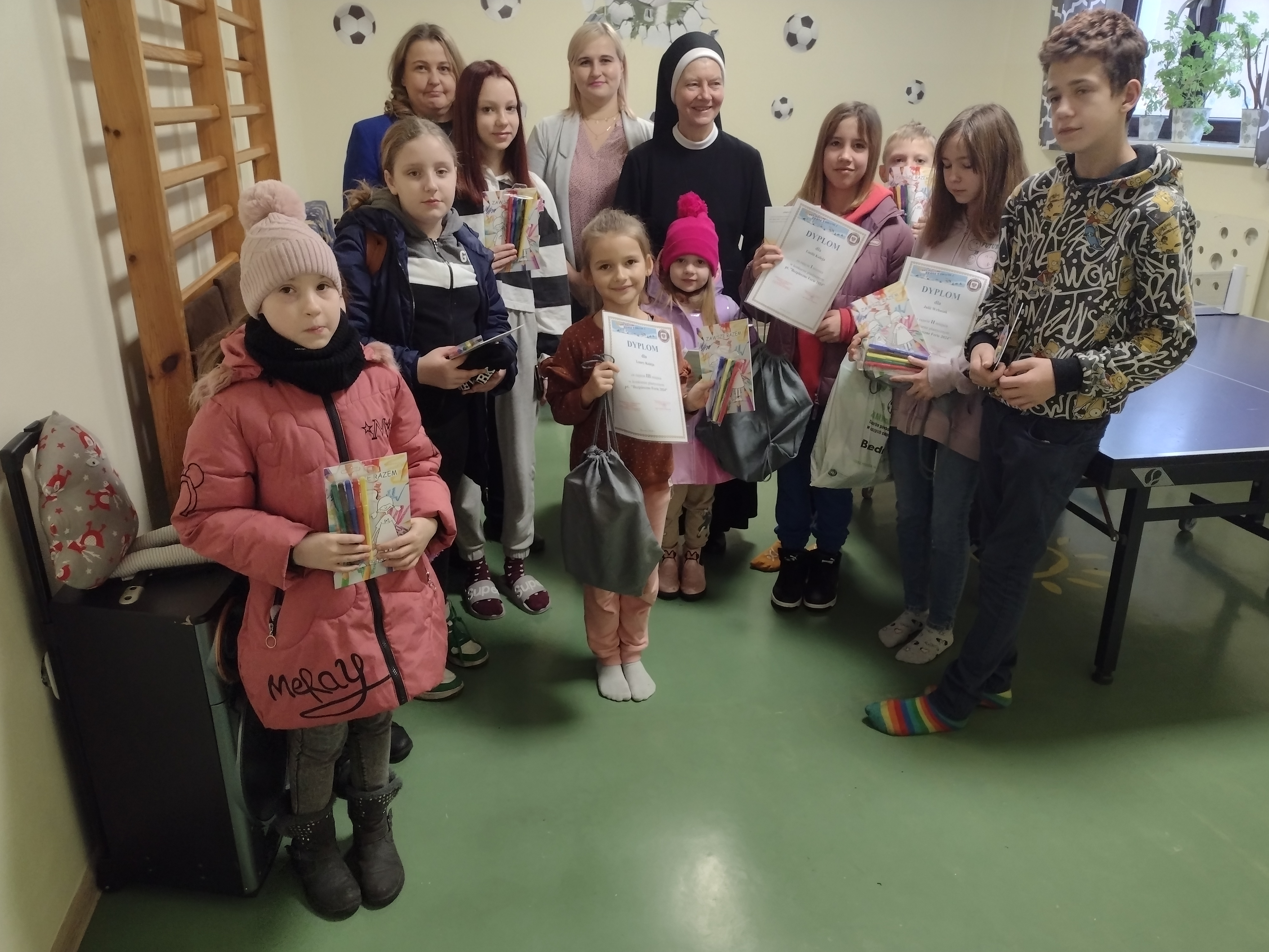 W dniu 09.02.2024 r. odbyło się uroczyste wręczenie nagród uczestnikom i zwycięzcom konkursu plastycznego pt. „Bezpieczne Ferie 2024” który został przeprowadzony wśród dzieci z „Ochronki” charytatywnej przy Bazylice NMP w Piekarach Śląskich.