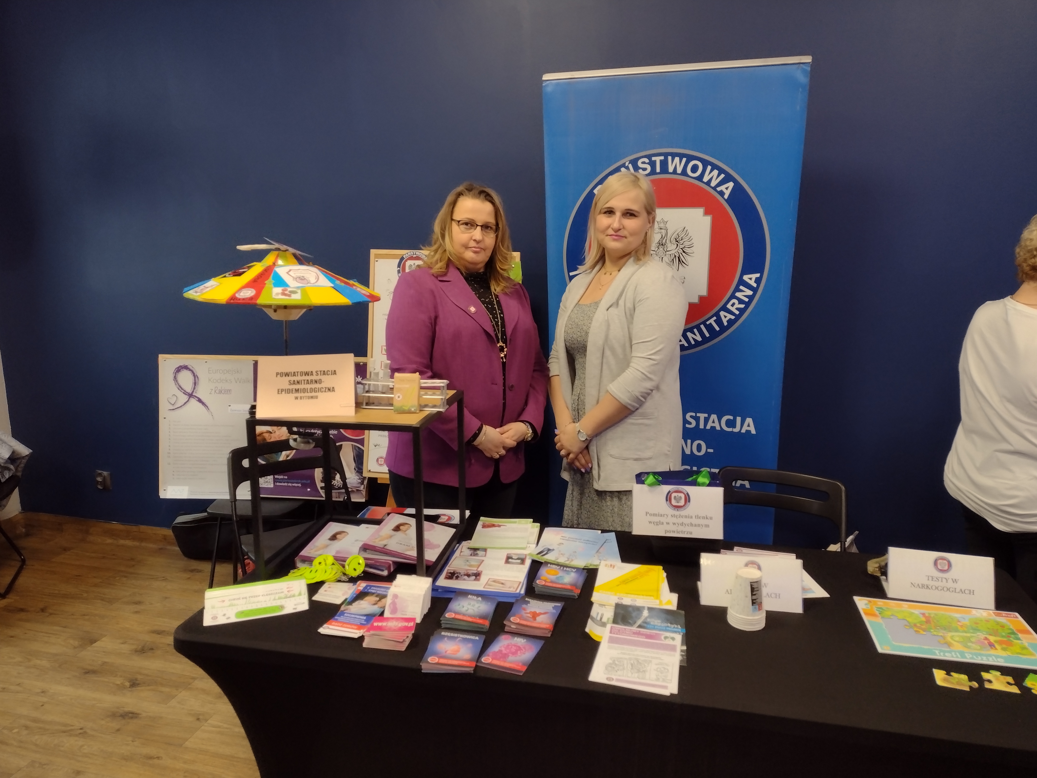 W związku z obchodami Dnia Kobiet, w dniu 08.03.2024 r., pracownicy Powiatowej Stacji Sanitarno-Epidemiologicznej w Bytomiu uczestniczyli w akcji profilaktycznej dla piekarskiej młodzieży, zorganizowanej na terenie Kina Zacisze. Na stoisku promocji zdrowia można było skorzystać z bezpłatnych materiałów profilaktycznych, wykonać określone zadania w okularach typu alkogogle i narkogogle, pomiary stężania tlenku węgla w wydychanym powietrzu, sprawdzić swoją wiedzę przy „kole wiedzy” oraz zobaczyć kleszcze w probówkach