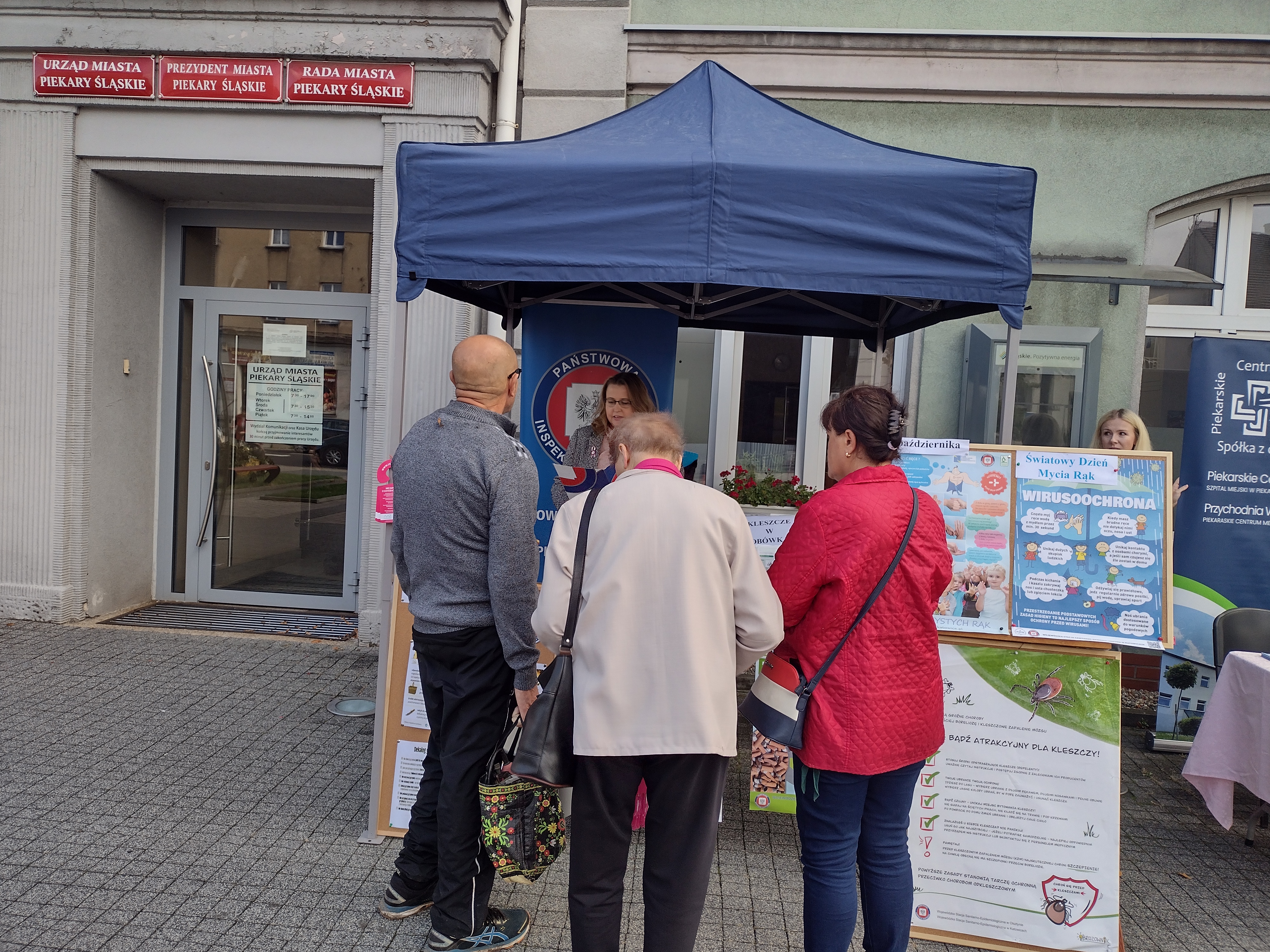 W dniu 13.10.2023 r. w związku z akcją profilaktyczną „Postaw na zdrowie”, przed budynkiem Urzędu Miasta Piekary Śląskie zorganizowane zostało plenerowe miasteczko zdrowia. Przy stoisku profilaktycznym PSSE Bytom każdy mógł zapoznać się z informacjami dot. profilaktyki chorób, promocji zdrowia, a także higieny rąk jako podstawowego środka zapobiegania przenoszenia się drobnoustrojów. Zainteresowane osoby mogły skorzystać z testów w alkogoglach i narkogooglach, zobaczyć kleszcze w probówkach oraz sprawdzić swoją wiedzę w quizie wiedzy.