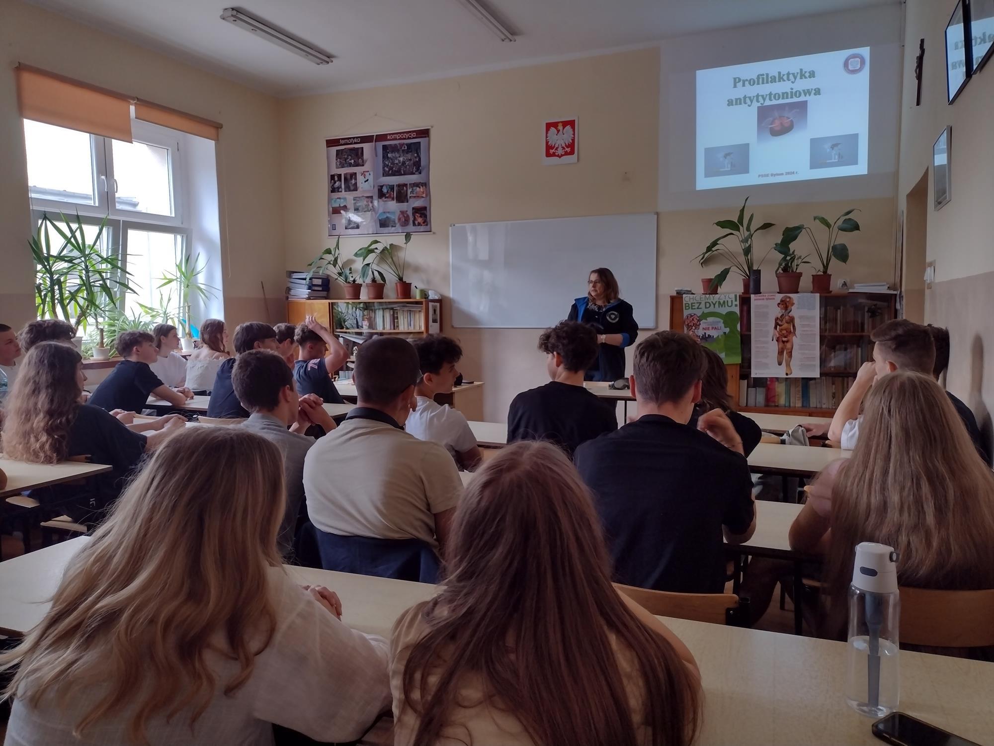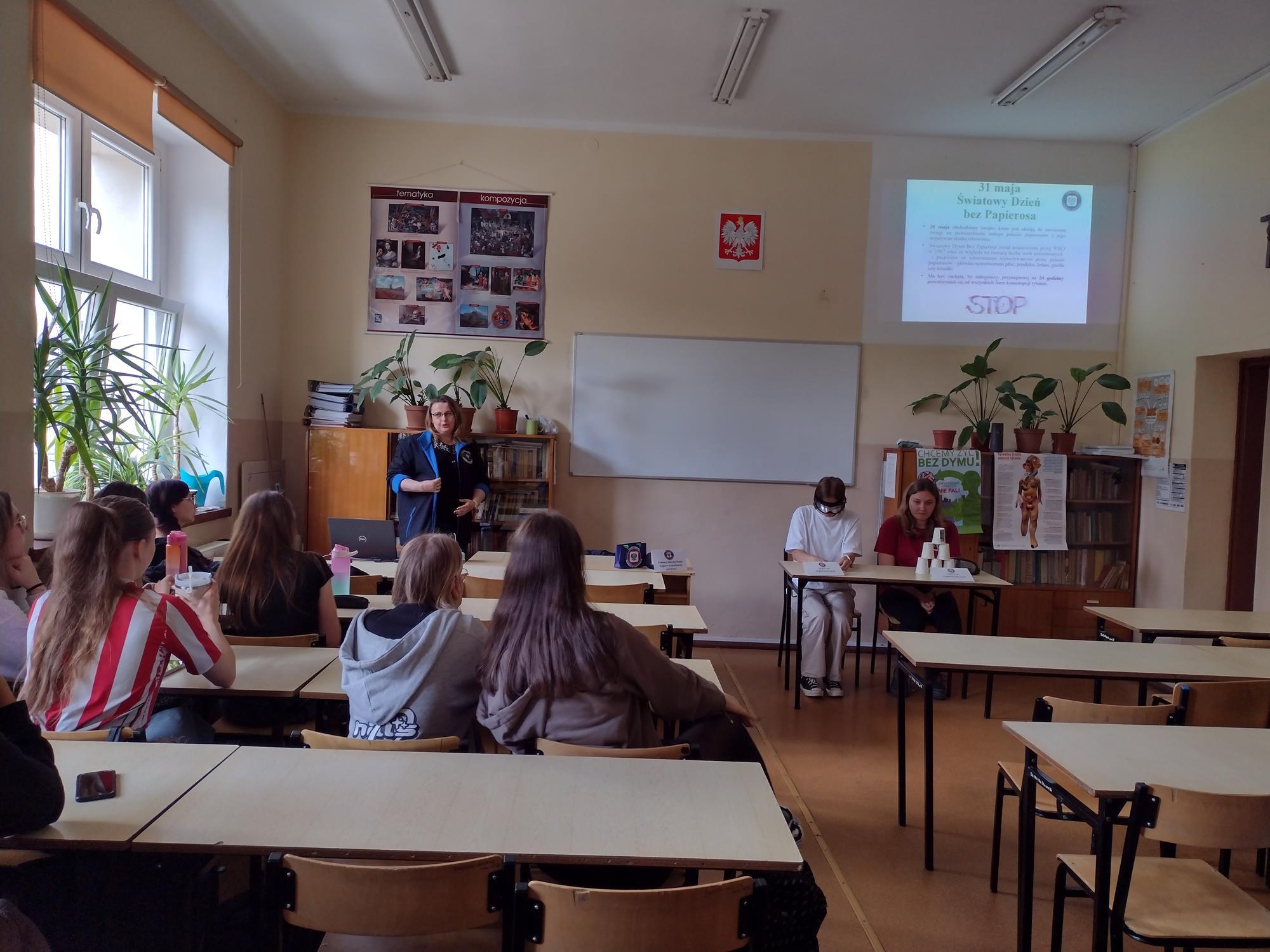 W związku ze Światowym Dniem Bez Tytoniu, pracownicy Powiatowej Stacji Sanitarno-Epidemiologicznej w Bytomiu przeprowadzili zajęcia profilaktyczne dla uczniów z I Liceum Ogólnokształcącego im. S. Sempołowskiej w Tarnowskich Górach. Oprócz tematów związanych ze szkodliwością palenia tytoniu i e-papierosów poruszyli tematy dotyczące środków psychoaktywnych, w tym napojów energetycznych. W celu lepszego zrozumienia tematów uczniowie mieli możliwość skorzystania z alkogogli i narkogogli, natomiast osoby palące mogły sprawdzić stężenie tlenku węgla w wydychanym powietrzu.