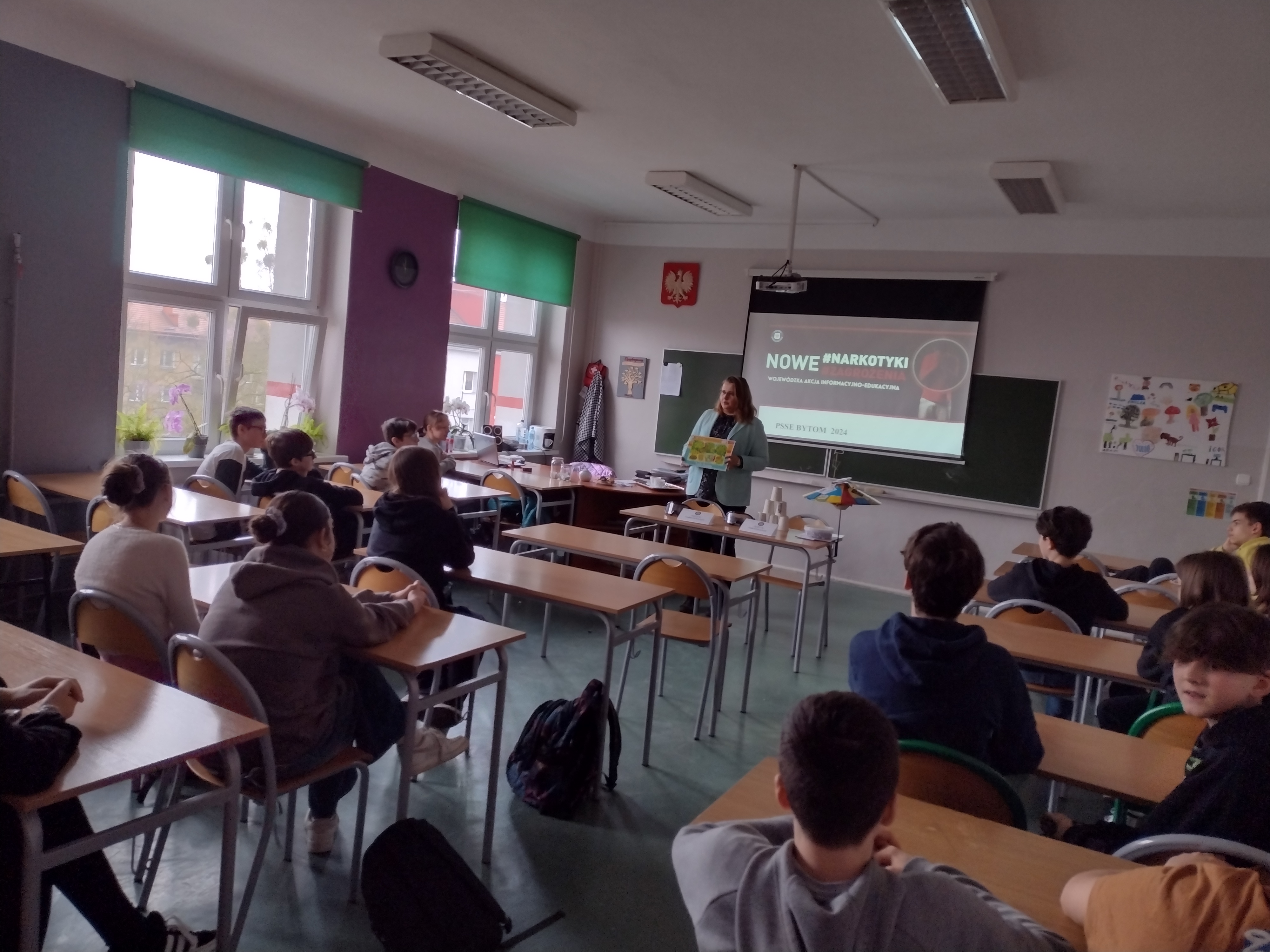 12 marca br. pracownicy Powiatowej Stacji Sanitarno Epidemiologicznej w Bytomiu przeprowadzili dla uczniów klasy VIII Szkoły Podstawowej nr 23 w Bytomiu zajęcia edukacyjne o charakterze profilaktycznym. Omówiono wpływ środków psychoaktywnych oraz napoi energetycznych na zdrowie i konsekwencje wynikających z podejmowania niewłaściwych wyborów. Uczniowie mieli możliwość wykonania testów przy użyciu alkogogli i narkogogli uświadamiając sobie tym samym przykre konsekwencje sięgania po tego typu środki. Podsumowano zajęcia quizem wiedzy.